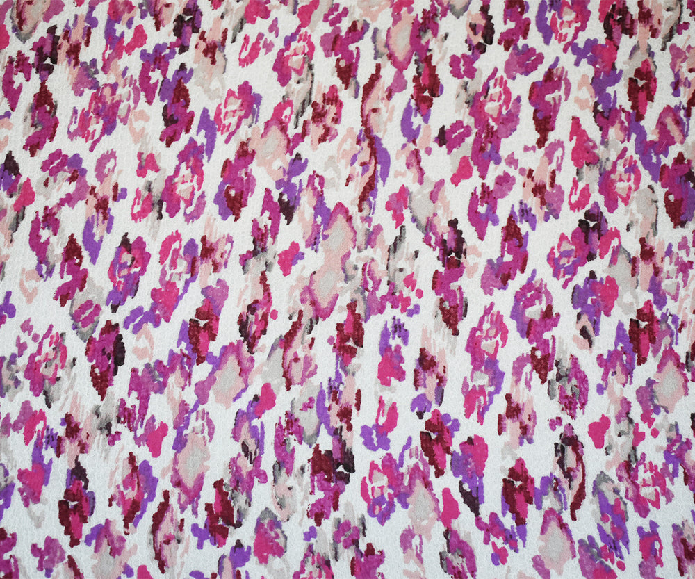 Fuchsia-Multi Abstract Water Color Spots Print Pebble Crepe Chiffon Fabric