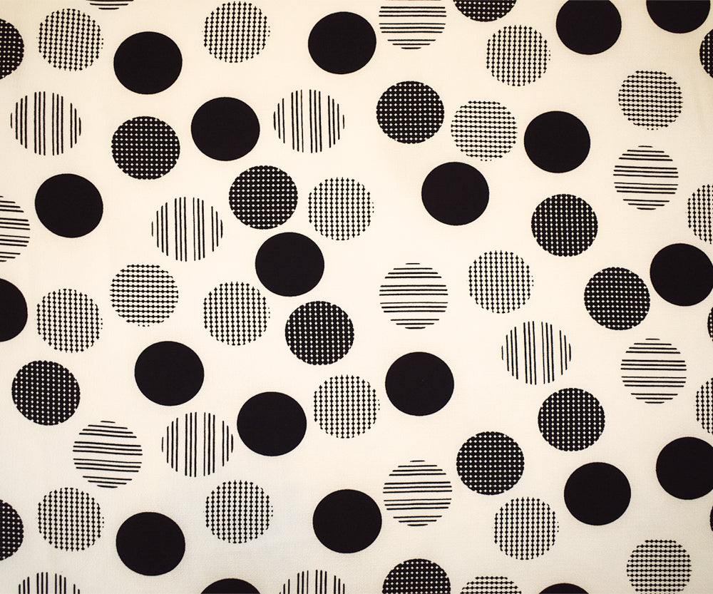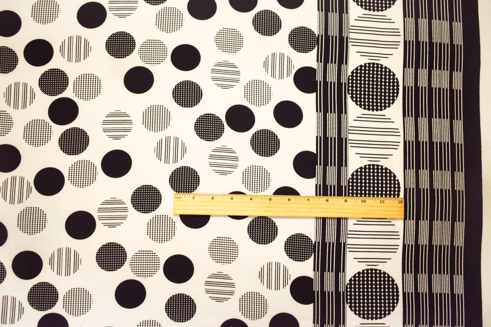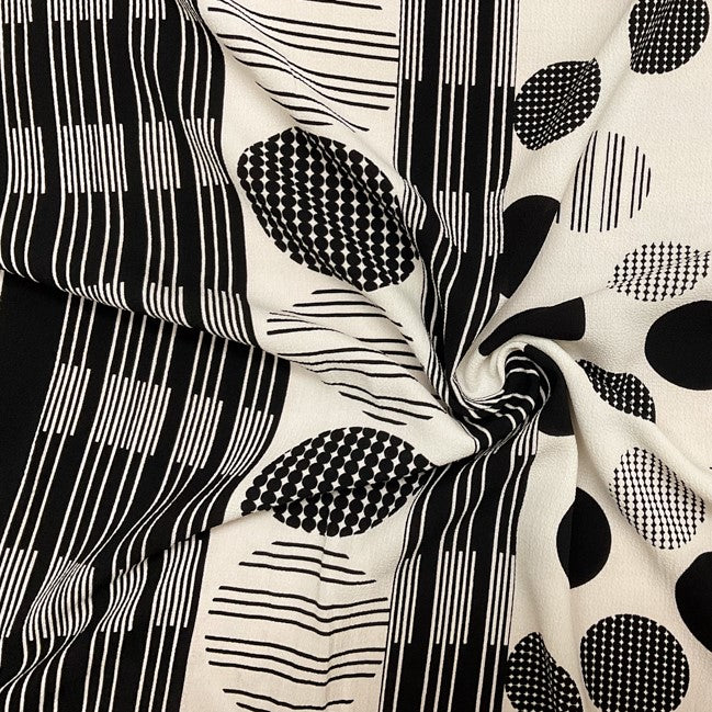 -Ivory-Black Poly Circle Abstract Printed Pebble Crepe Woven Fabric