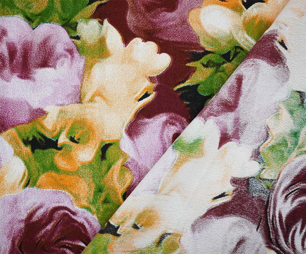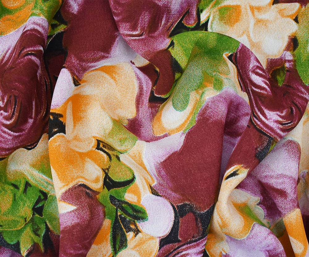 Maroon-Yellow-Multi Floral Printed Rayon Crepe Faille Woven Fabric