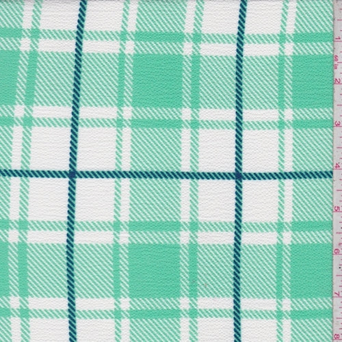 Mint/White/Teal Plaid Crinkled Crepe Fabric