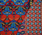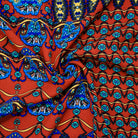 Orange-Teal Mandala Border Multi Pattern Printed Crinkle Crepe Woven Fabric