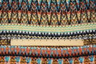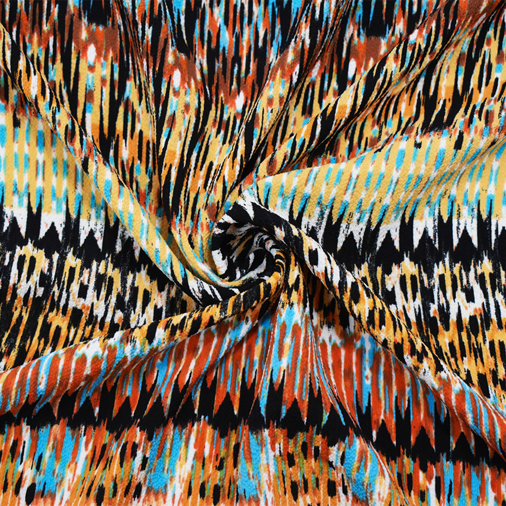 Orange-Turquoise-Multi Poly Aztec Ikat Printed Pebble Crepe Woven Fabric