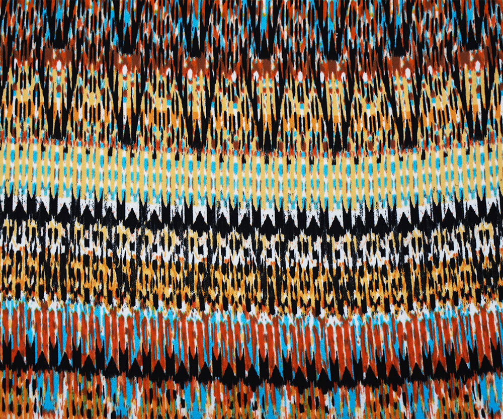 -100% Polyester pebble crepe woven fabric printed with an Aztec inspired ikat-like stylized pattern. Line if needed.