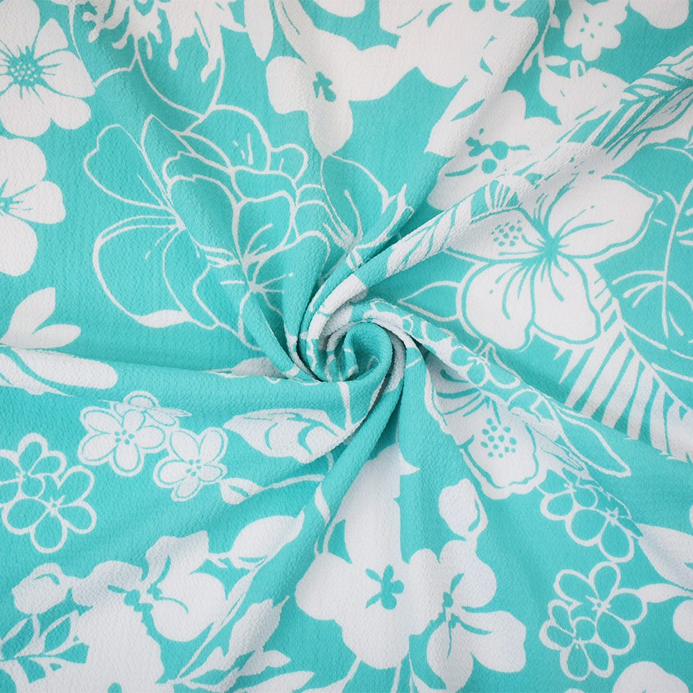 Pastel Teal-White Polyester Nylon Floral Printed Pebble Crepe Woven Fabric