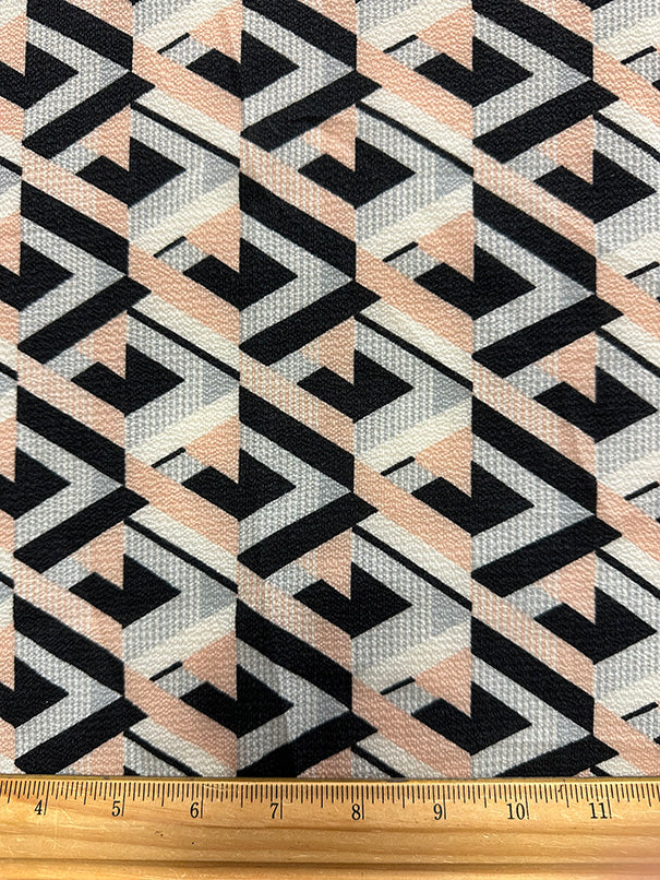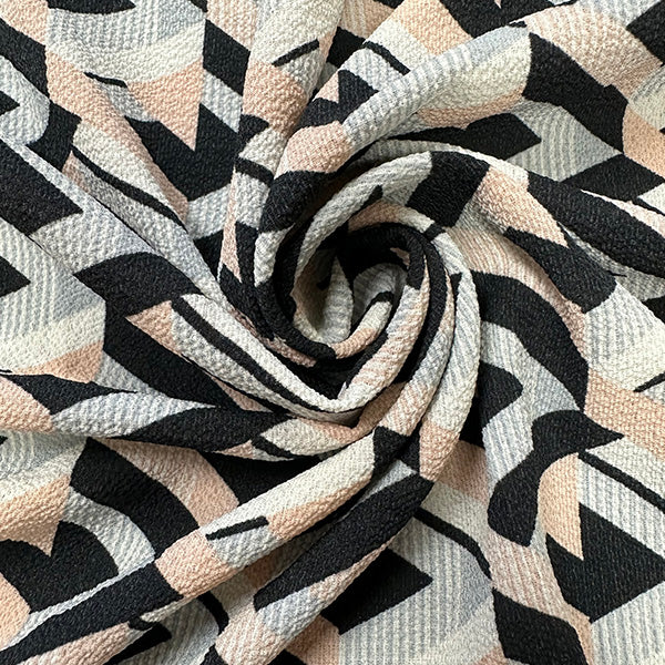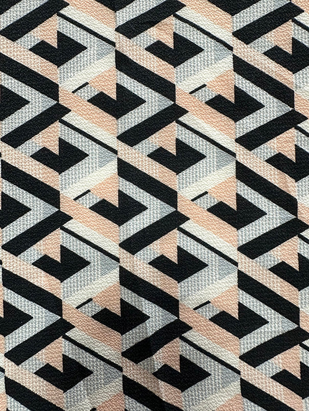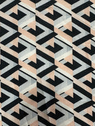 -Peach, Gray, Off White, & Black Multi Geometric Poly Print High Crepe Fabric