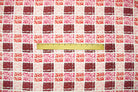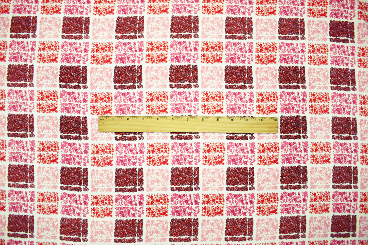 Pink-White Poly Square Floral Plaid Printed Moss Crepe Woven Fabric