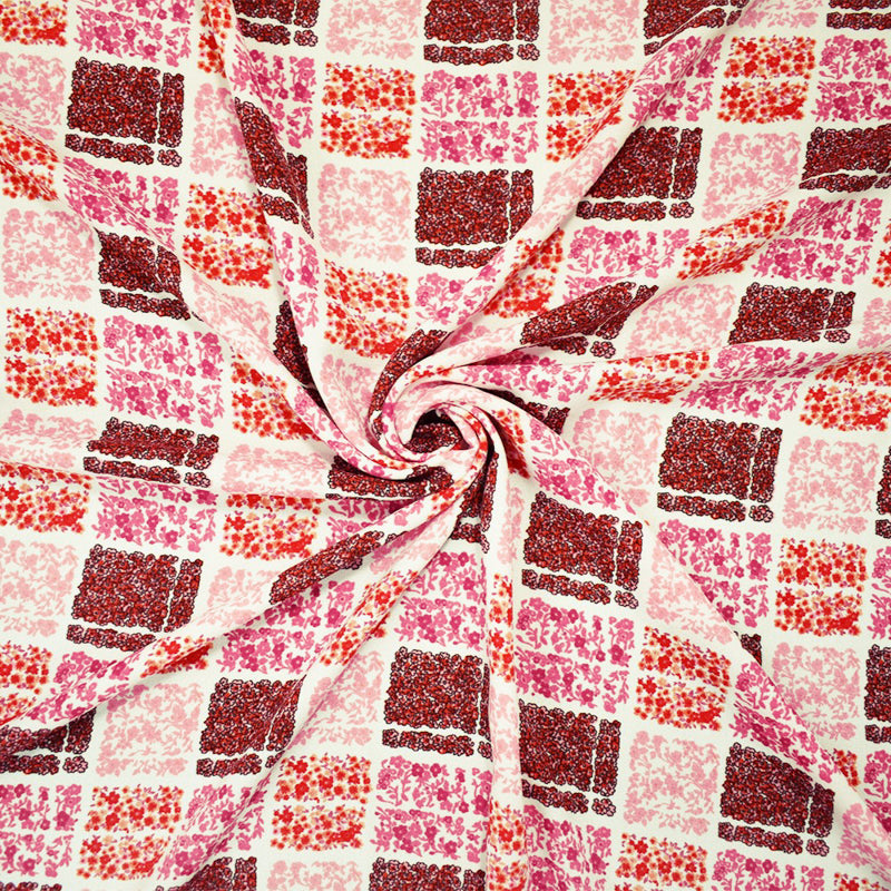 -Pink-White-Multi Poly Square Floral Plaid Printed Moss Crepe Woven Fabric