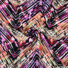 Purple-Coral-Multi Poly Abstract Tribal Chevron Printed Crepe Woven Fabric