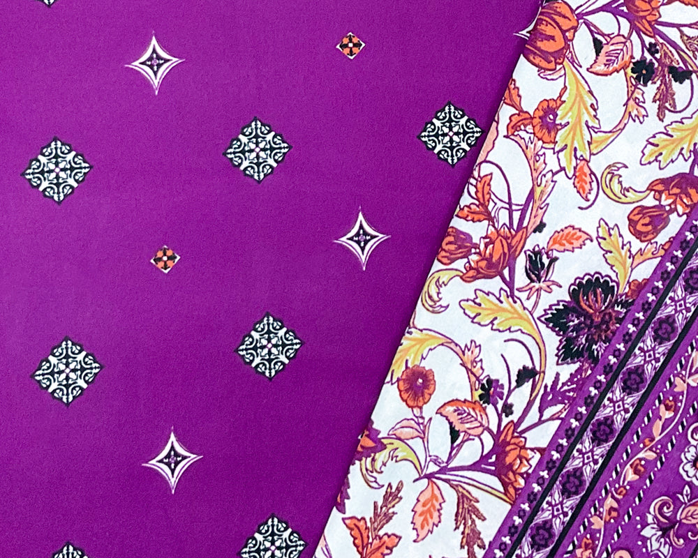 Purple-Multi Poly Border Print Momie Georgette Woven Fabric