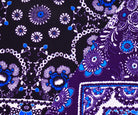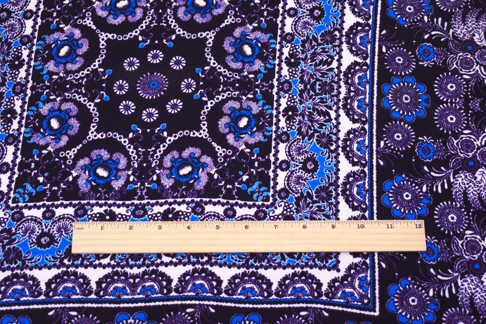 Purple-Turquoise-Ivory Poly Floral Bordered Printed Crepe Woven Fabric