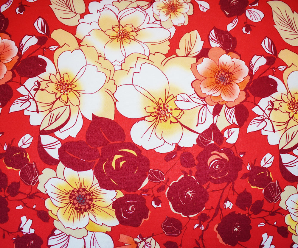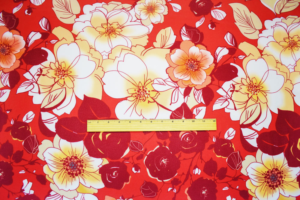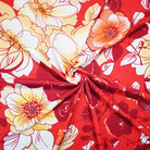 -Red-Biege-Multi Poly Floral Printed Pebble Crepe Woven Fabric