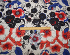 -Red-Blue-Multi Poly Floral Printed Pebble Crepe Woven Fabric