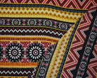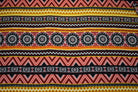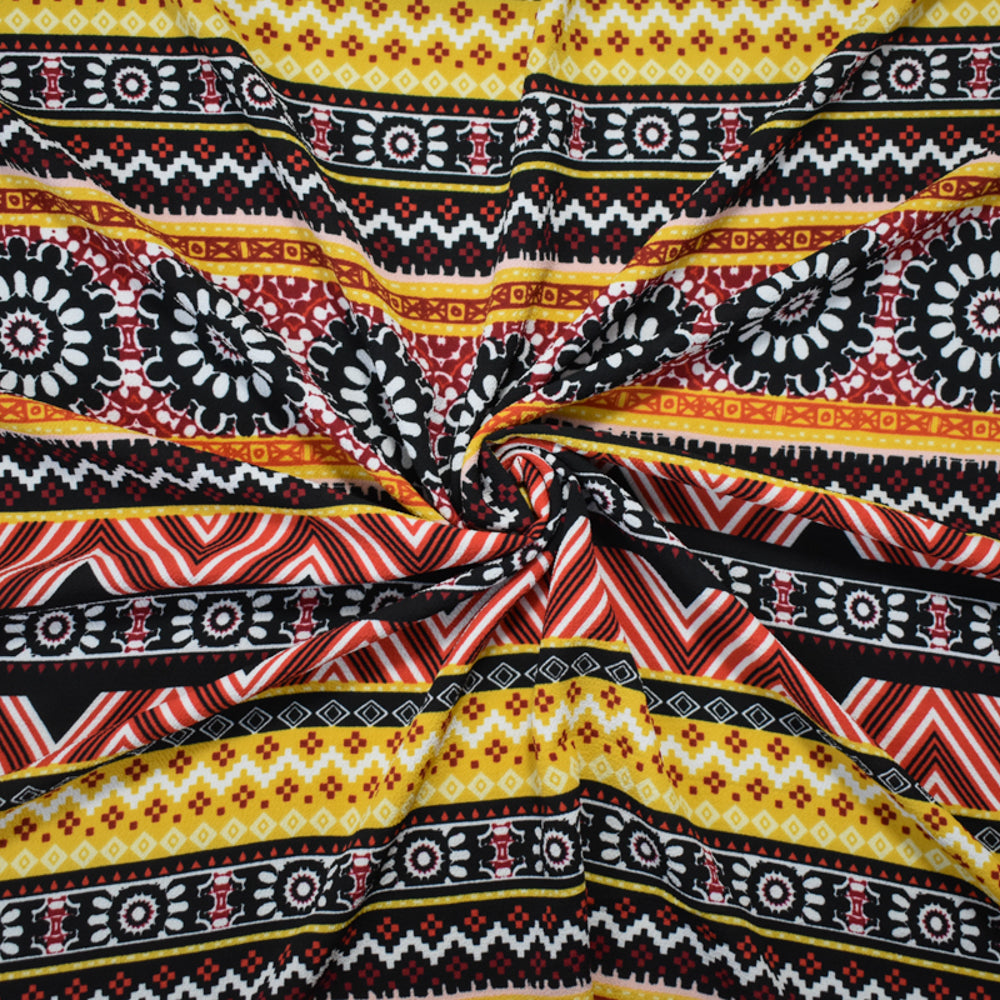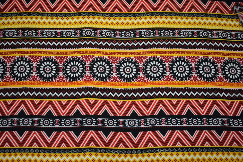 -Red-Multi Poly Floral Aztec Stripe Border Printed Pebble Crepe Woven Fabric