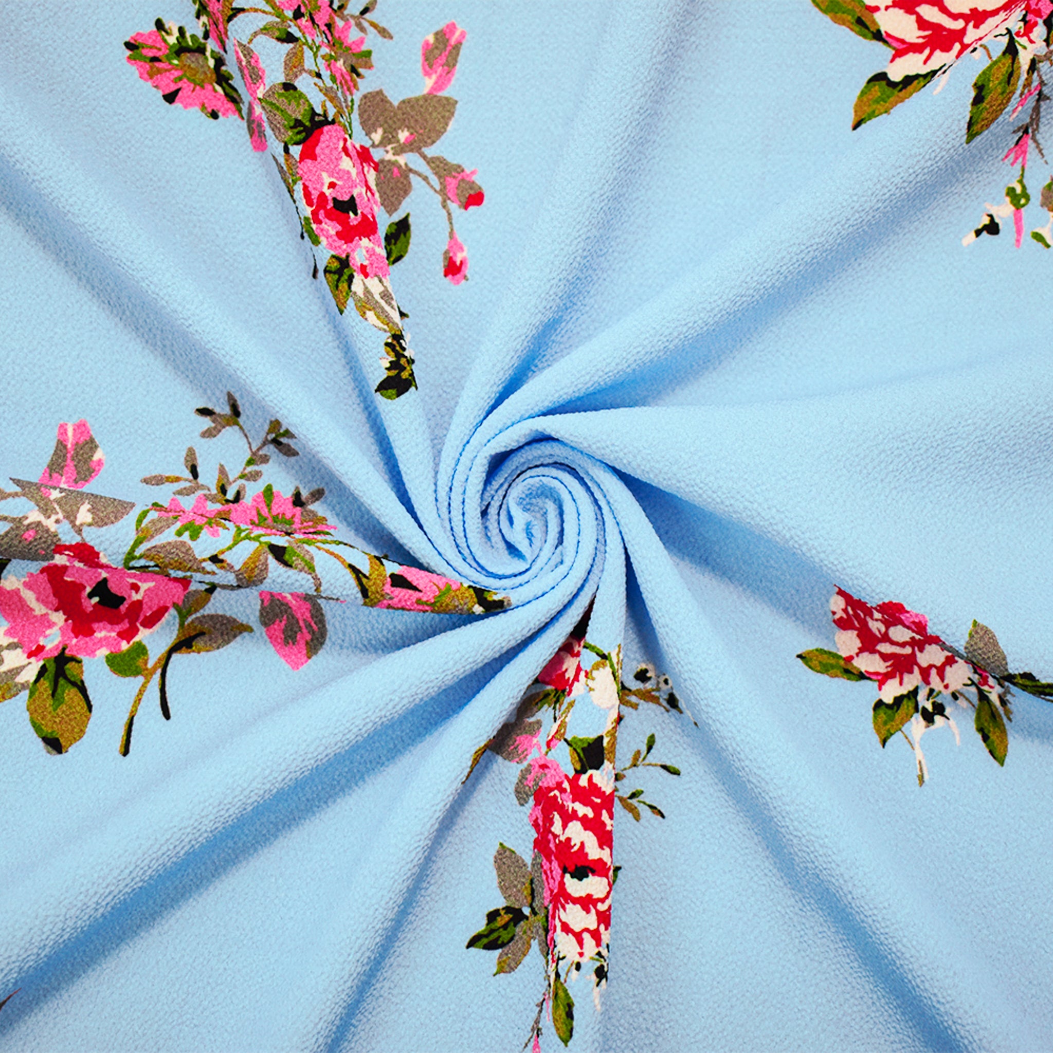 -100% polyester pebble crepe woven fabric printed with a floral pattern