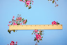 Sky Blue-Pink-Multi Poly Floral Printed Pebble Crepe Woven Fabric