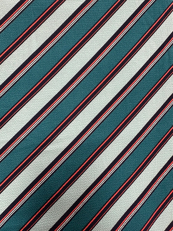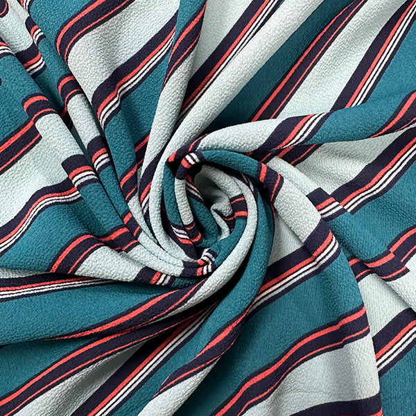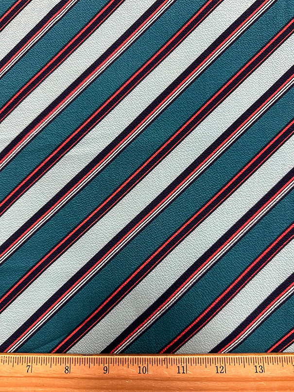 Teal Multi Diagonal Stripe Poly Print High Crepe Fabric