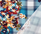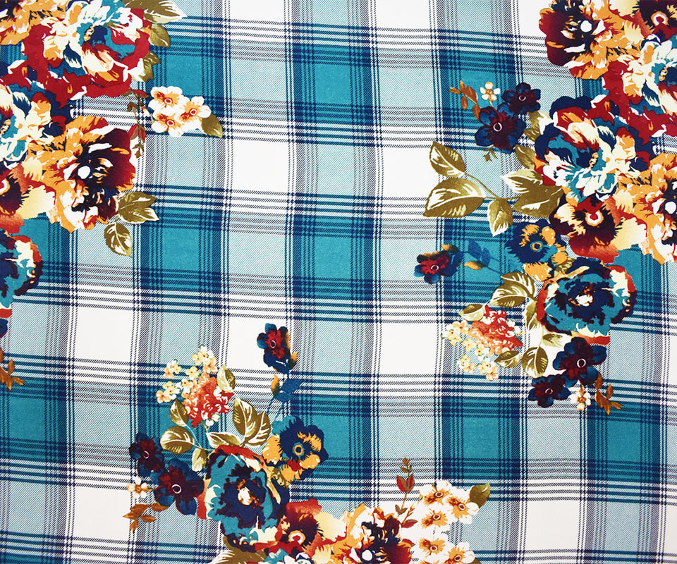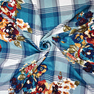 Turquoise-Multi Poly Floral Plaid Printed Moss Crepe Woven Fabric