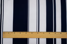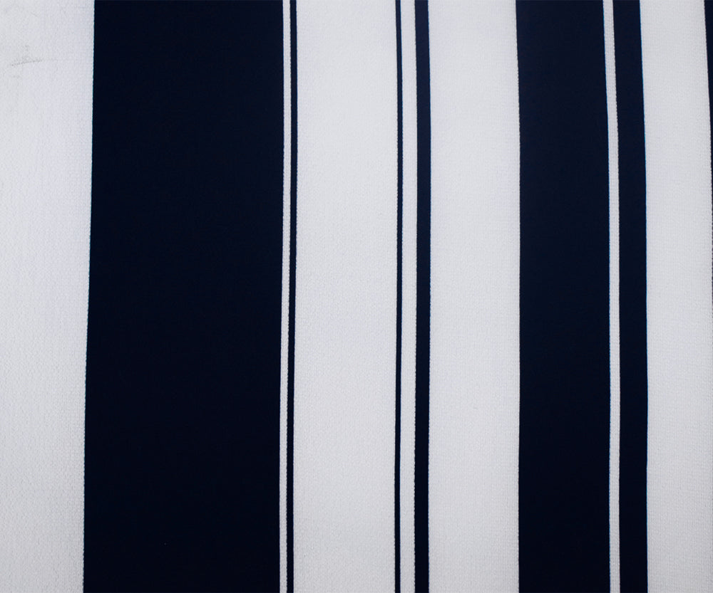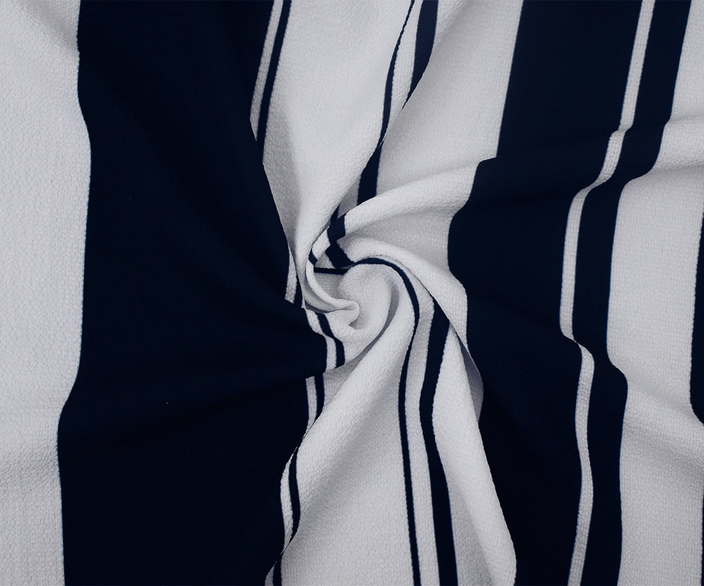 White-Deep Navy Stripe Printed Stretch Poly Spandex Crinkle Crepe Woven Fabric