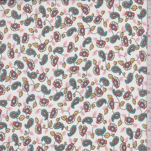 White Multi Paisley Vine Crepe Chiffon Fabric