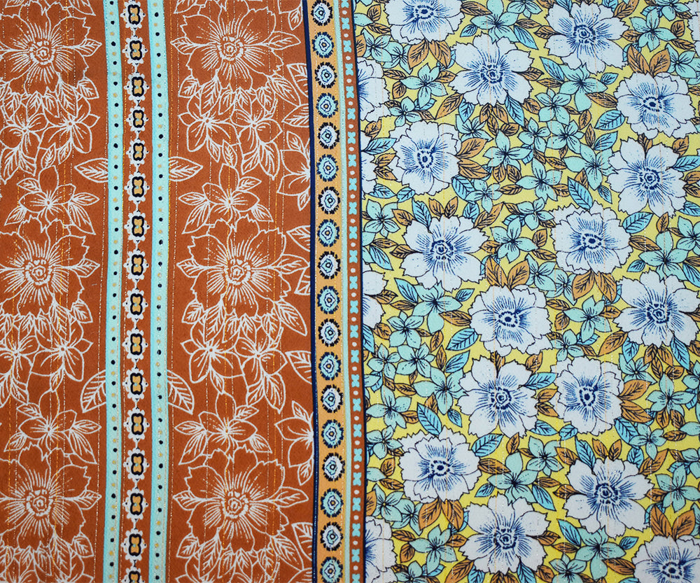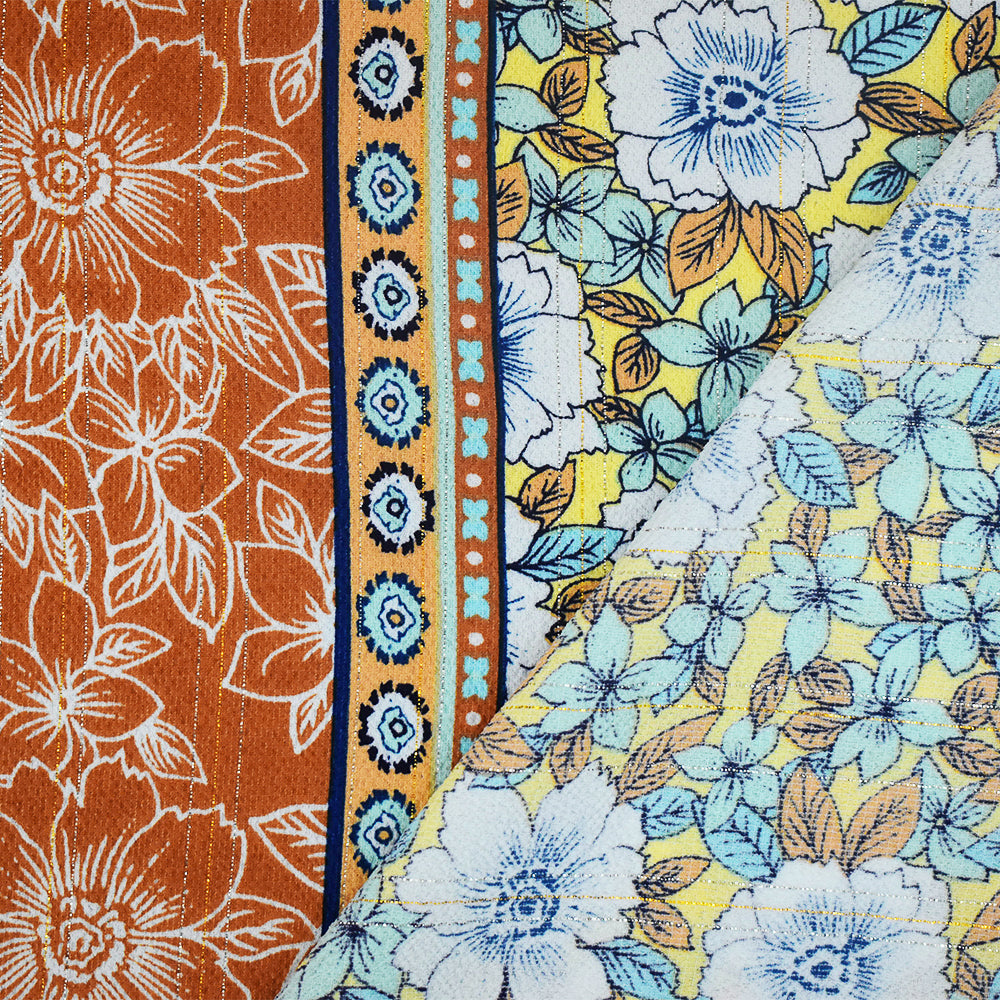 -Floral and Border printed with metallic stripe polyester spandex ghost crepe woven fabric