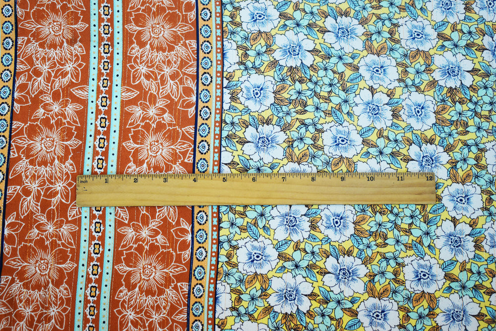 Yellow-Multi Floral Border Print Stretch Metallic Poly Ghost Crepe Fabric