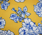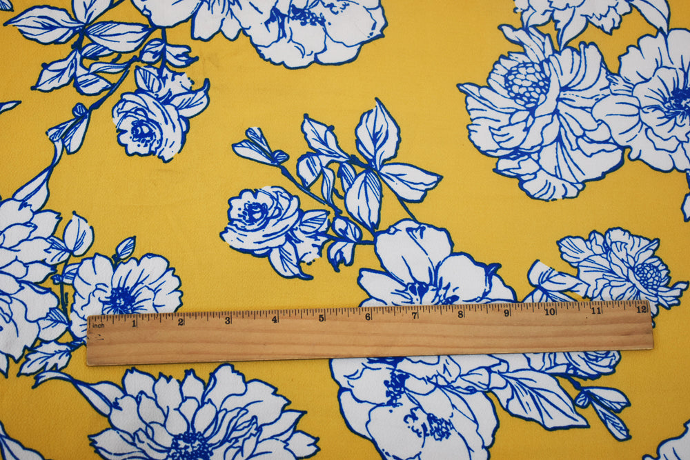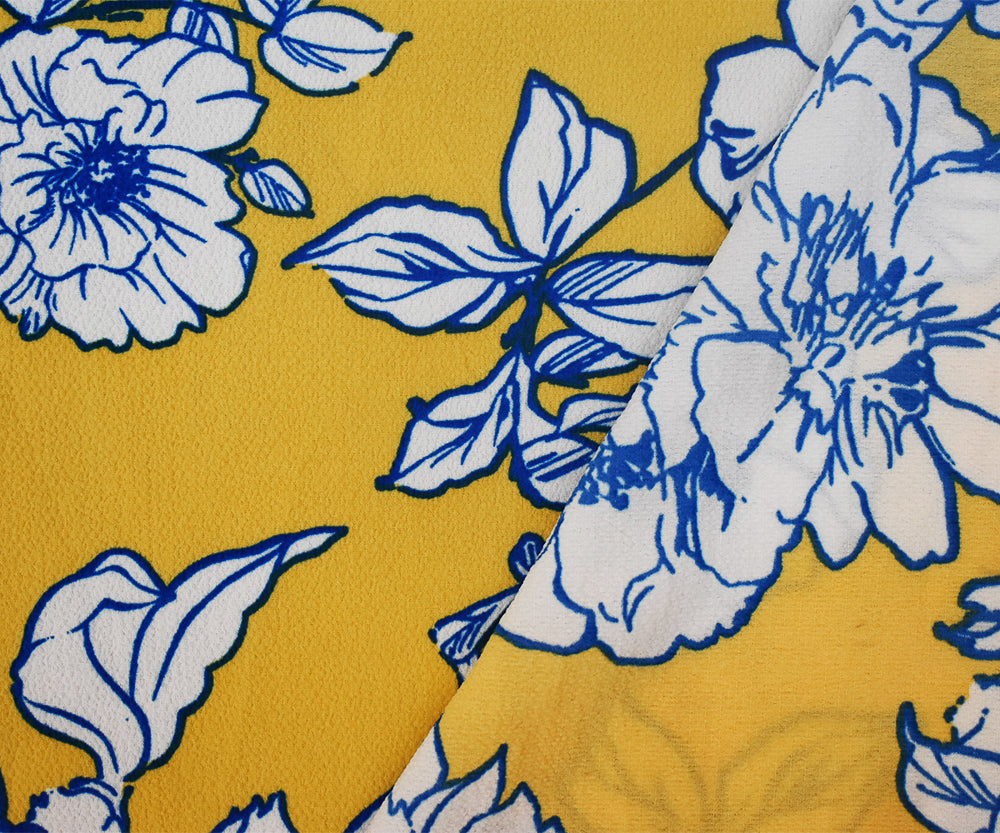 Yellow-White Floral Printed Stretch Poly Spandex Ghost Crepe Woven Fabric
