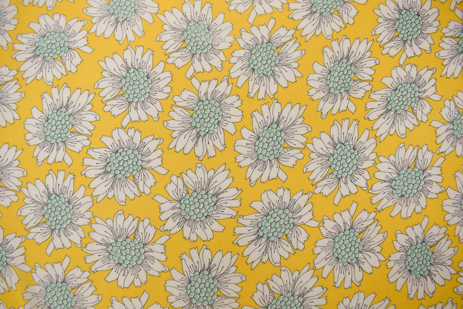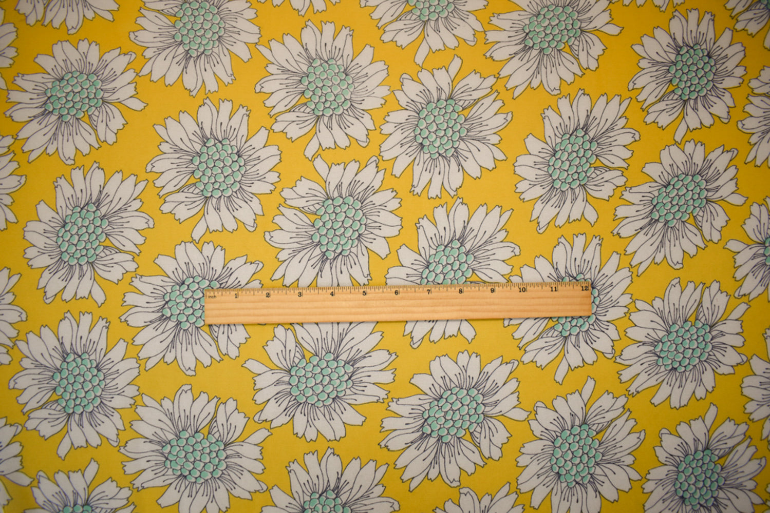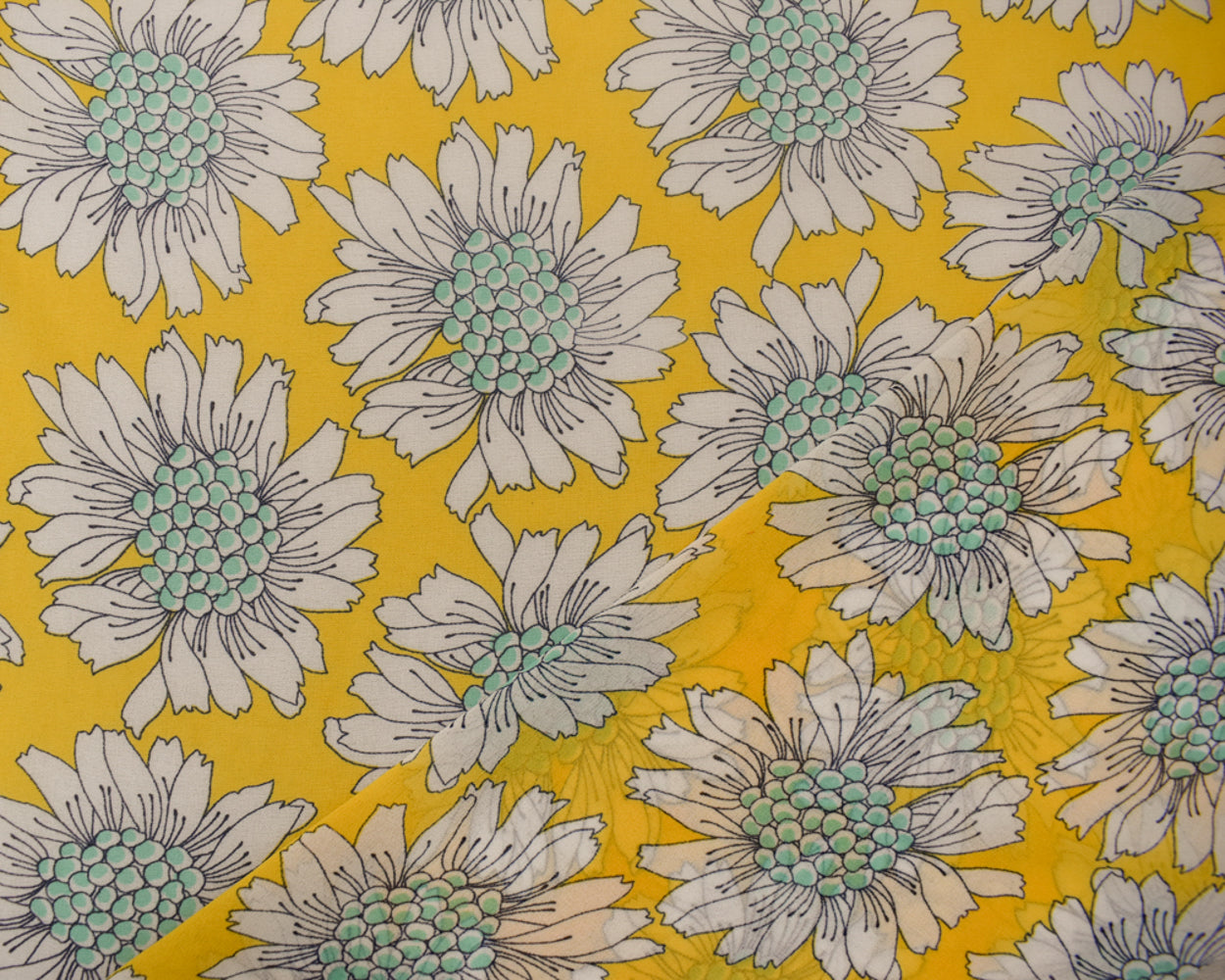 Yellow-White-Multi Poly Floral Printed Georgette Woven Fabric