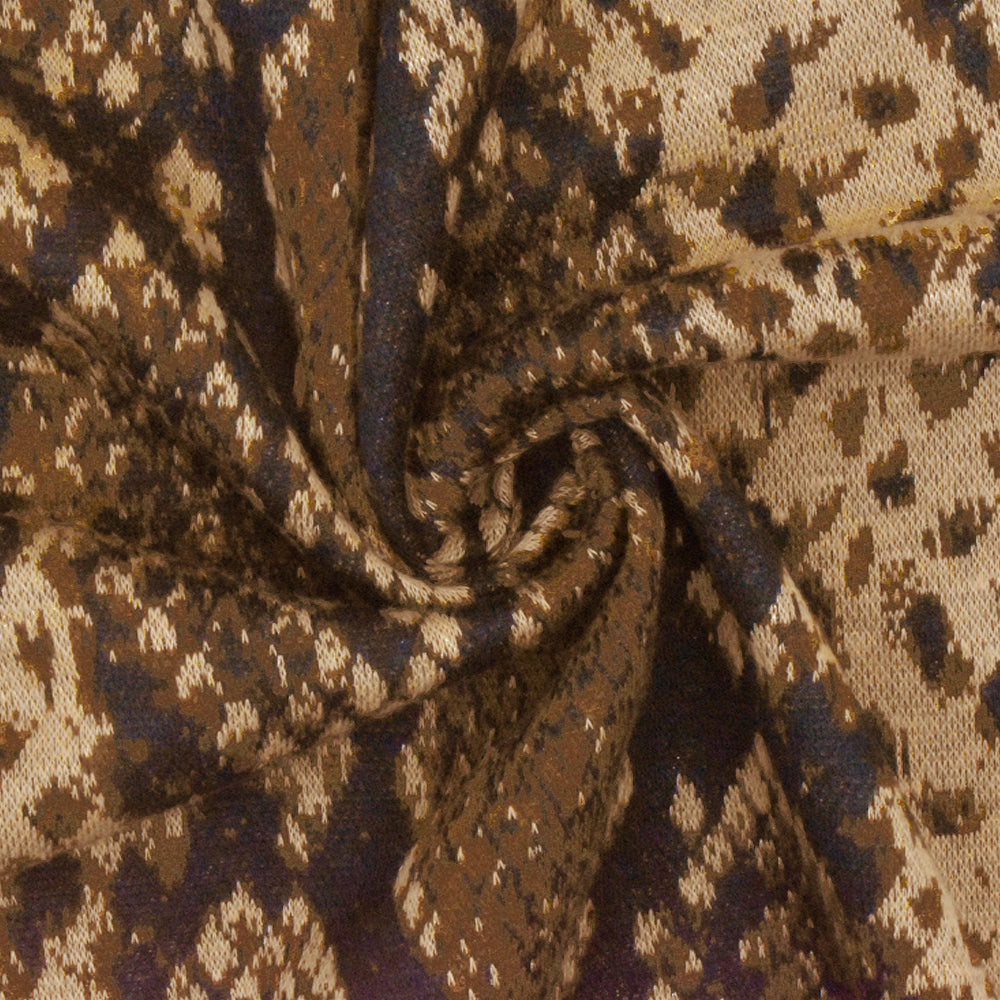 Beige-Multi Famous Designer Reptile Jacquard Stretch Double Knit Fabric