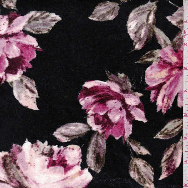 Black/Mulberry Floral Panne Velvet Knit Fabric