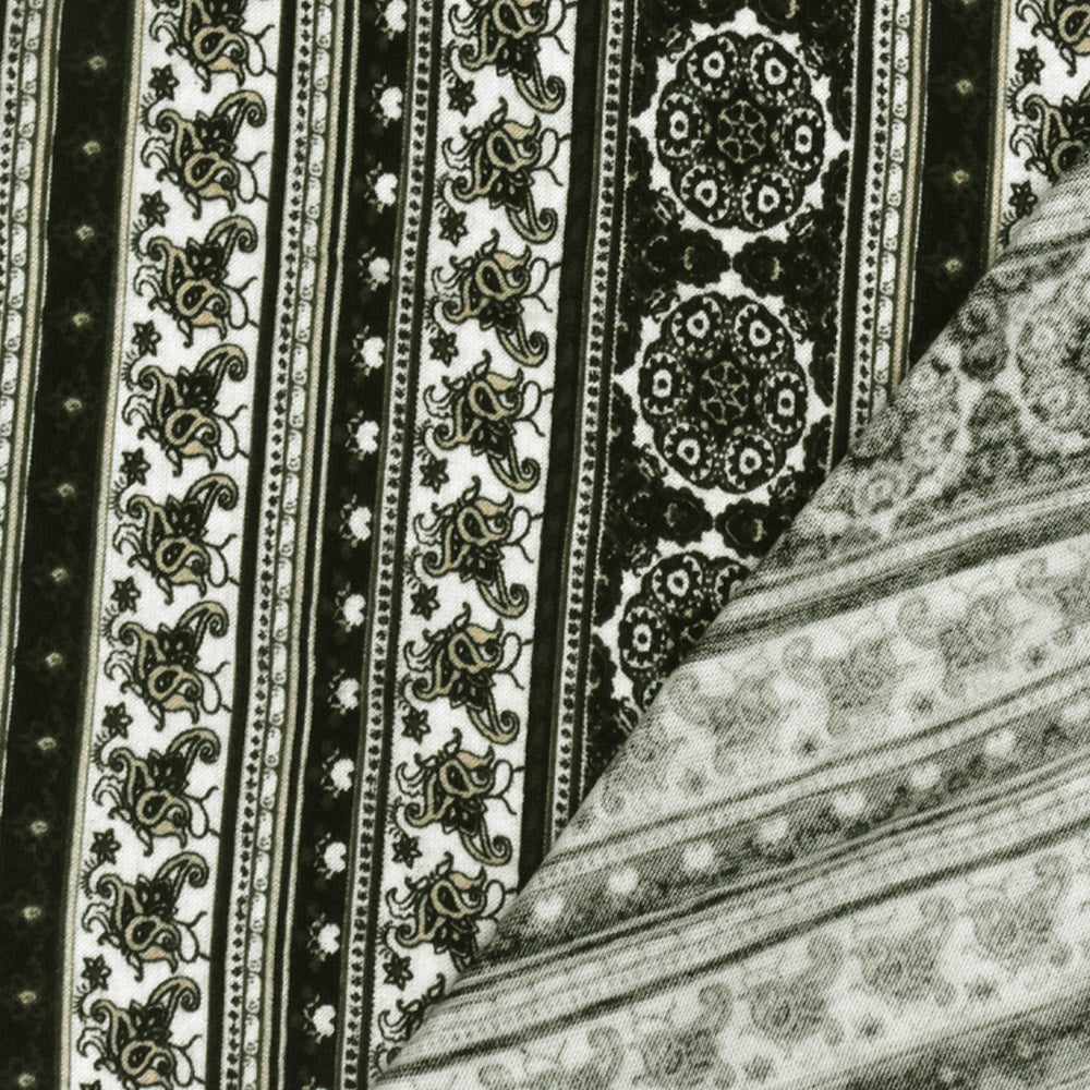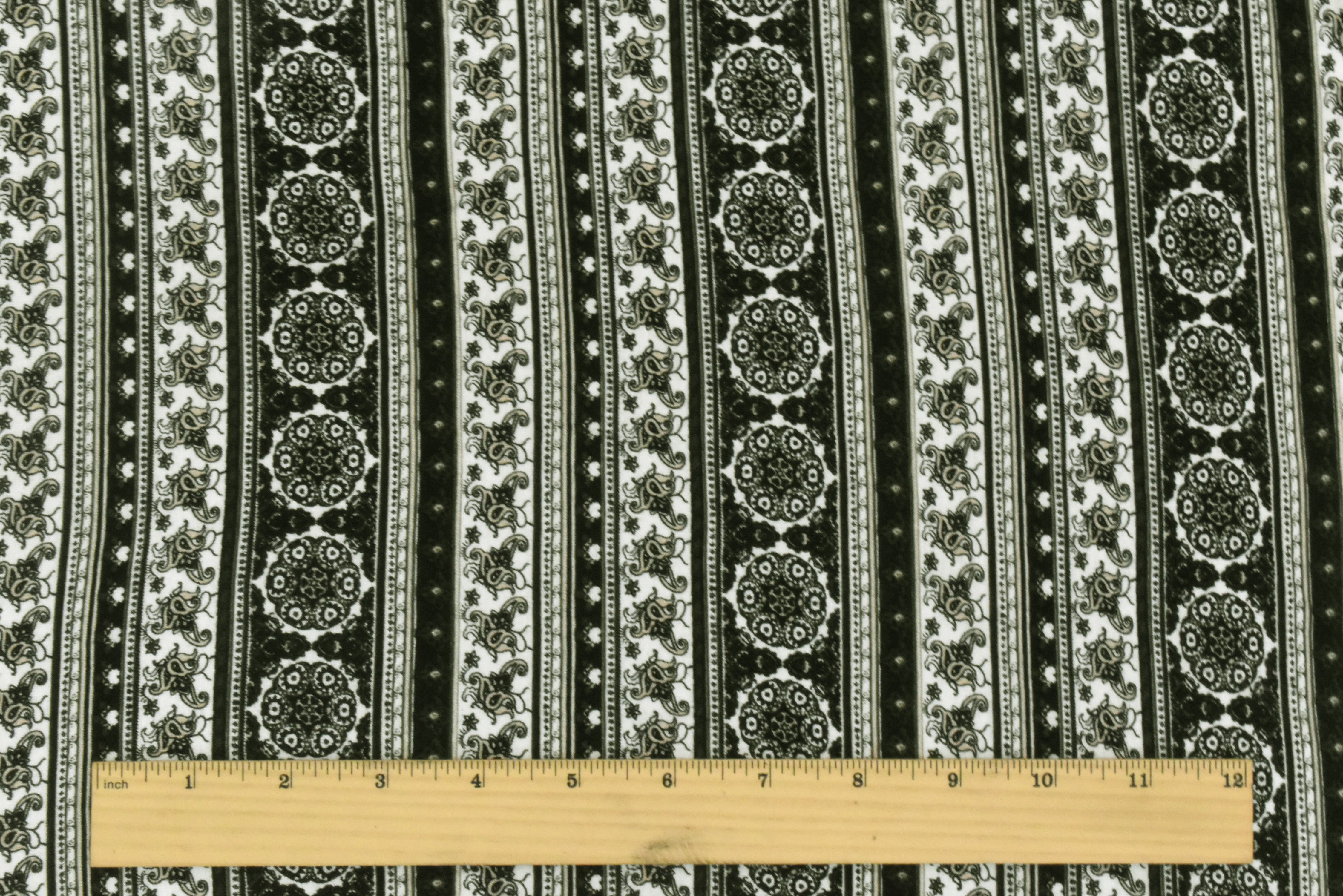 Black-Multi Mixed Pattern Stripe Printed Rayon Stretch Jersey Knit Fabric