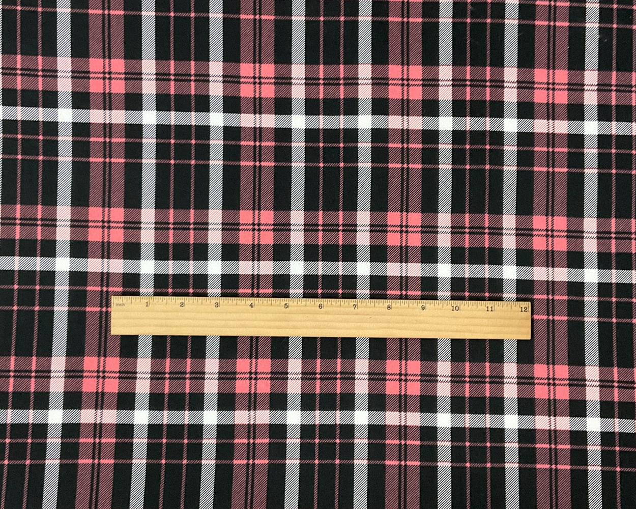 Black-Pink-Multi Poly Stretch Spandex Plaid Print DB Jersey Knit Fabric