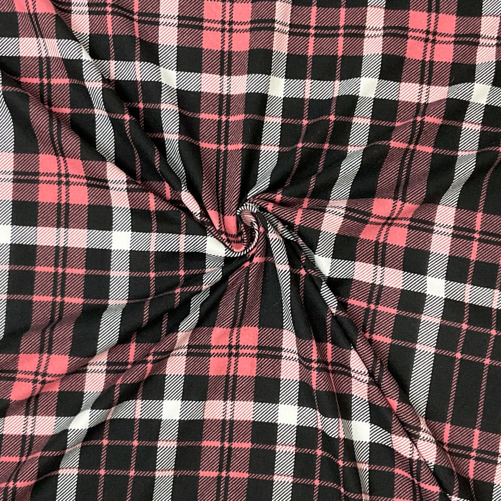 -Black-Pink-Multi Poly Spandex Stretch Plaid Print Double Brush Jersey Knit Fabric