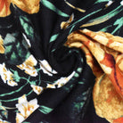 Black-Sky Blue-Multi Floral Printed Rayon Stretch Jersey Knit Fabric