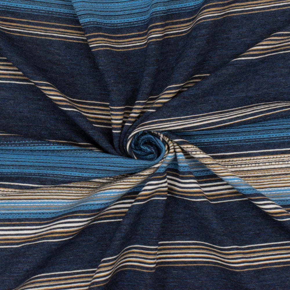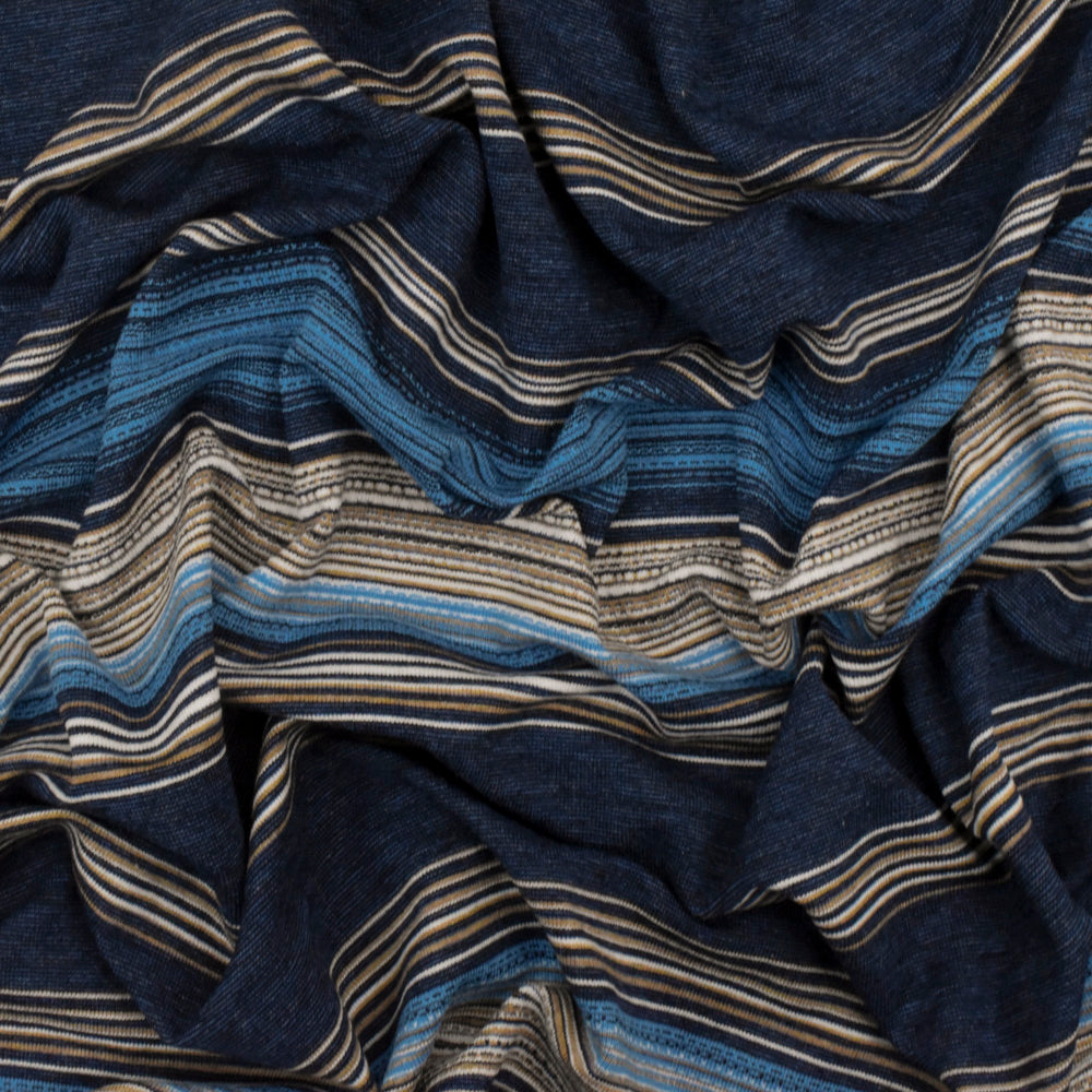 Blue-Multi Striped Viscose Stretch Jersey Knit Fabric