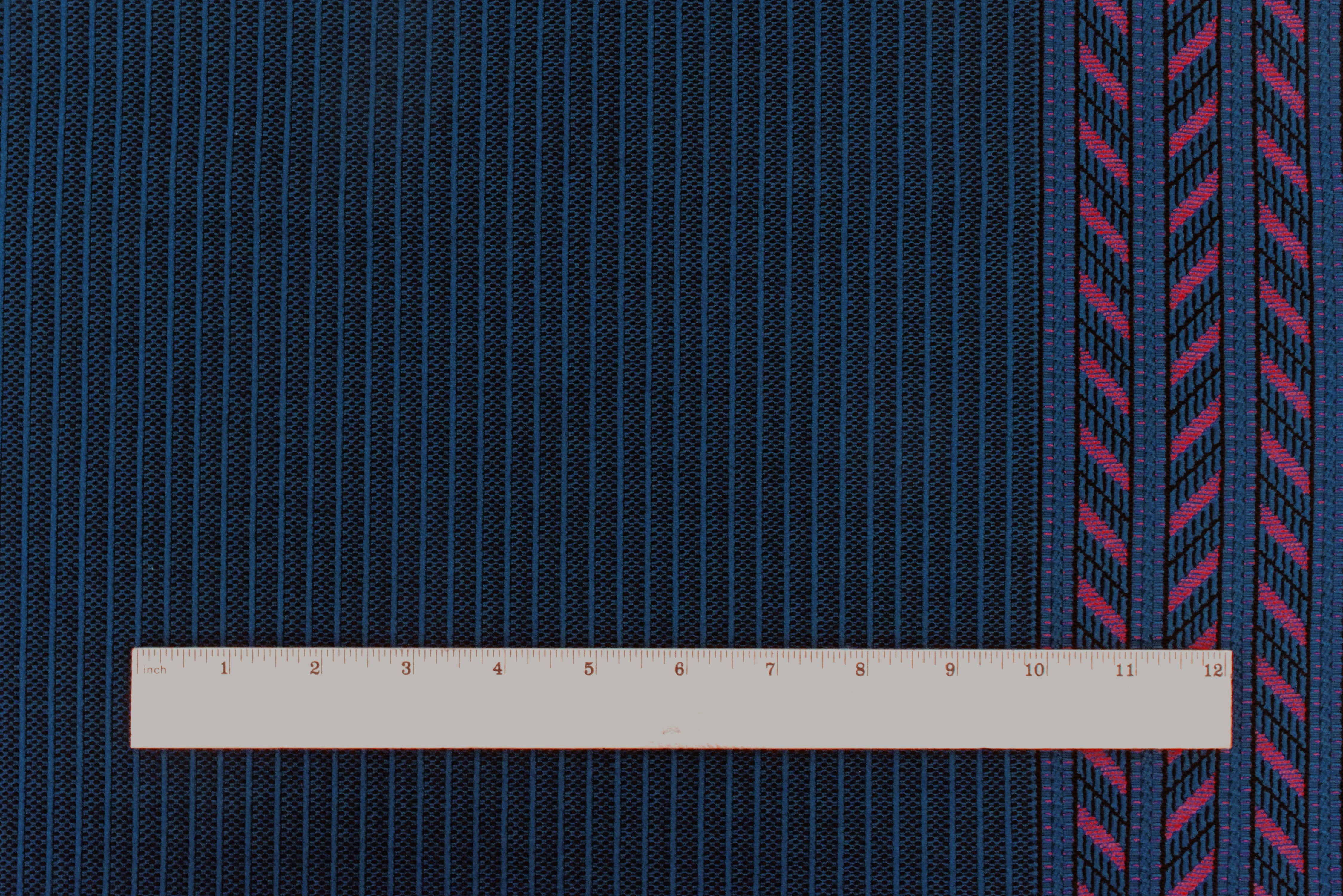 Blue-Red-Black Tribal Stripe Border Stretch Jacquard Double Knit Fabric