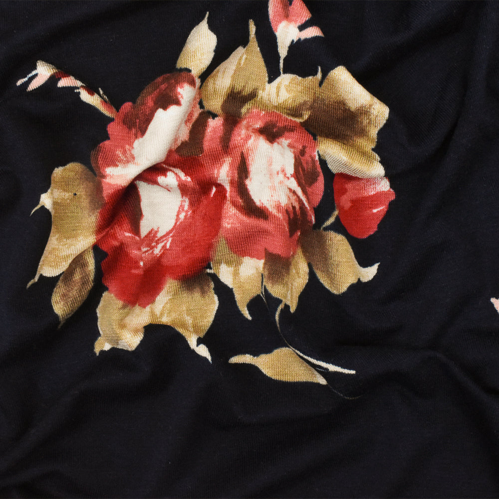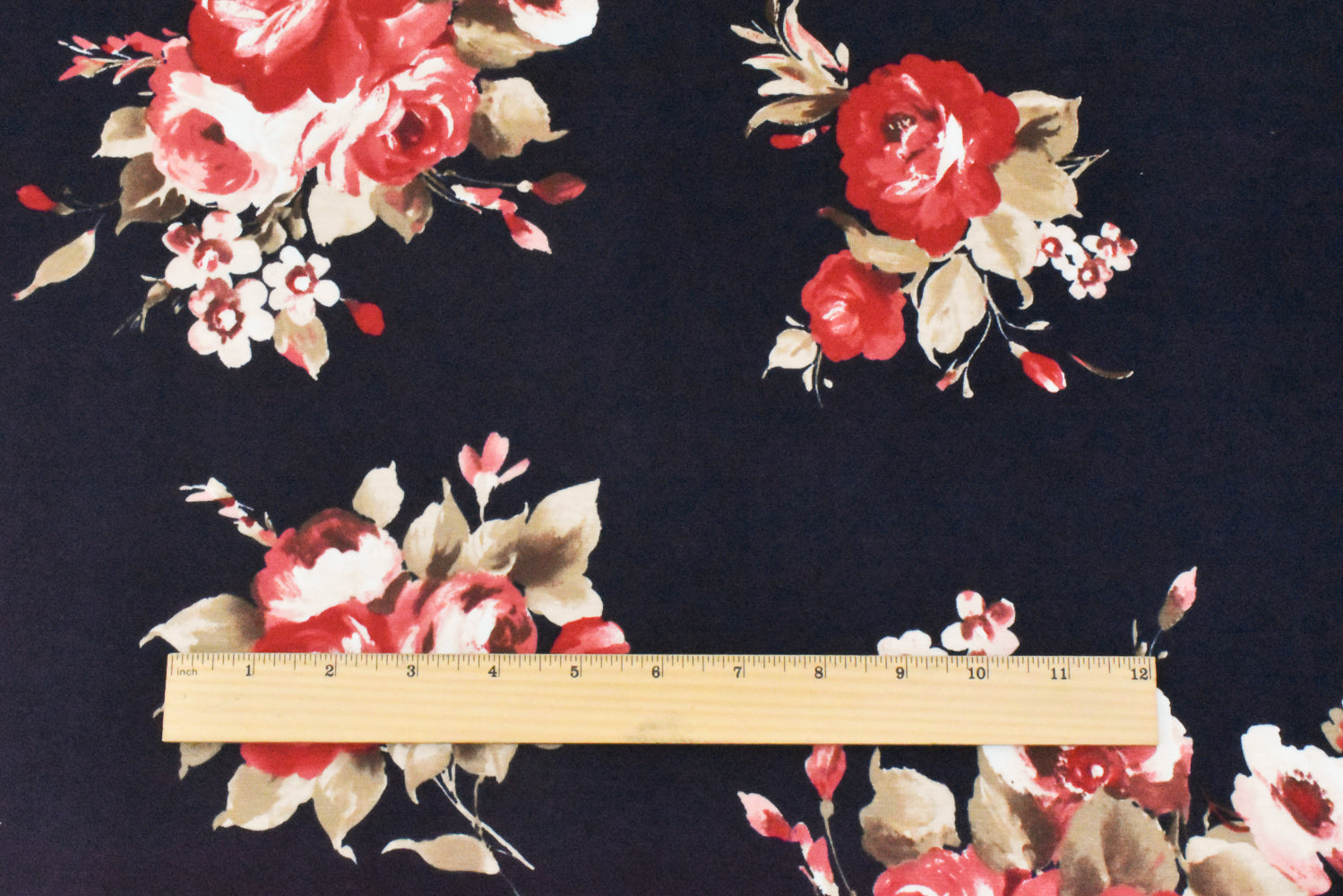 Blue-Red-Multi Floral Printed Stretch Rayon Spandex Jersey Knit Fabric
