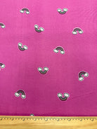 -Black, White, Pink, Yellow, Green, & Purple Rainbow Print on Bright Pink Double Brushed Jersey Knit Fabric
