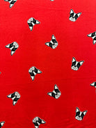 -Black & White Bulldog Print on Bright Red Double Brushed Jersey Knit Fabric