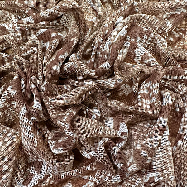 Brown and Beige Multi Print Snakeskin Stretch Mesh Fabric