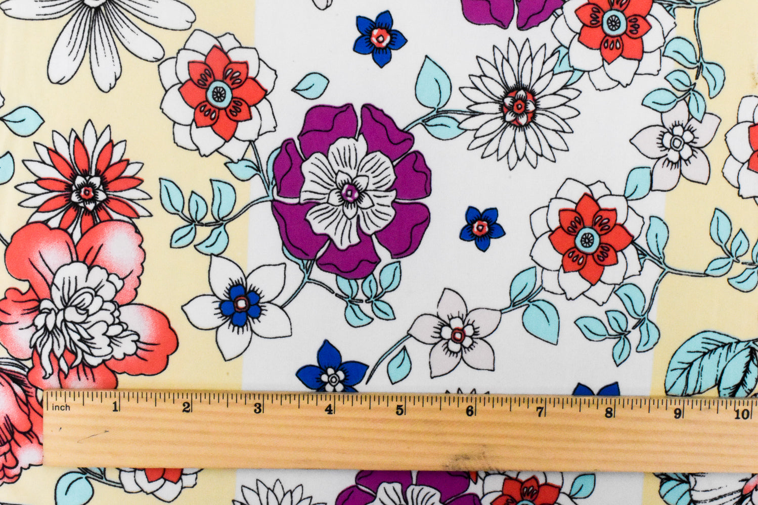 Cream Yellow-Teal-Multi Floral Stretch Poly Swimwear knit Fabric