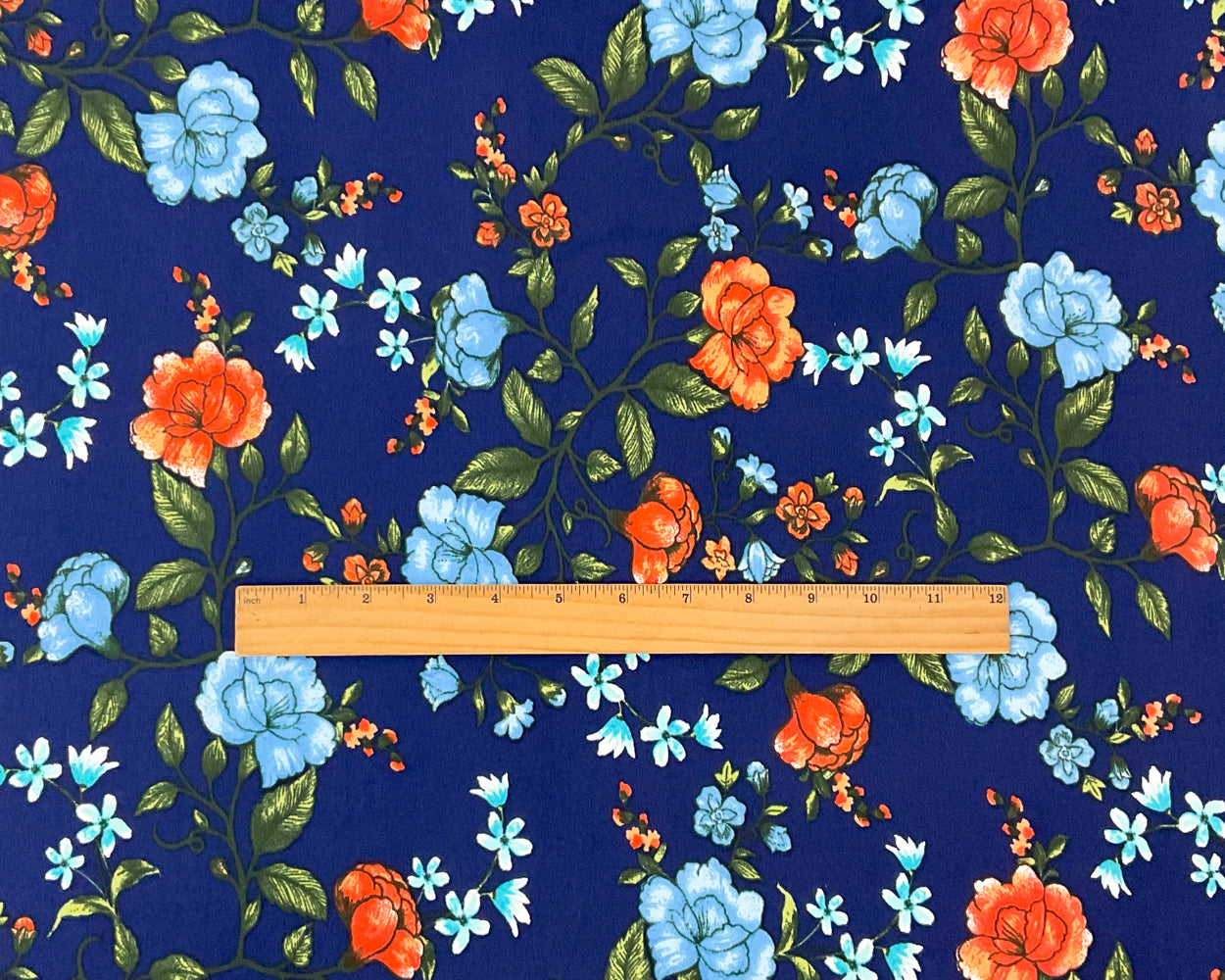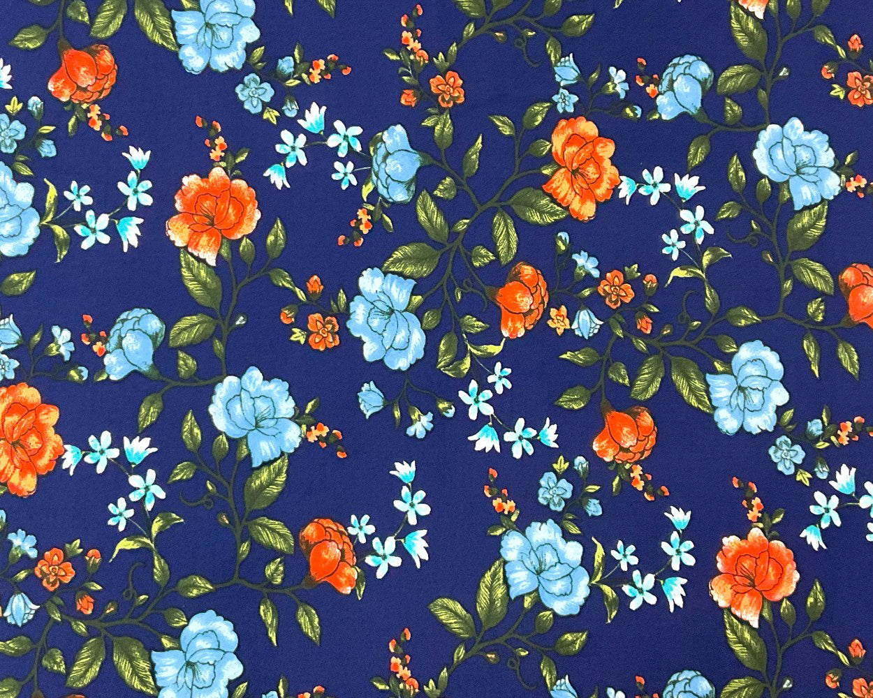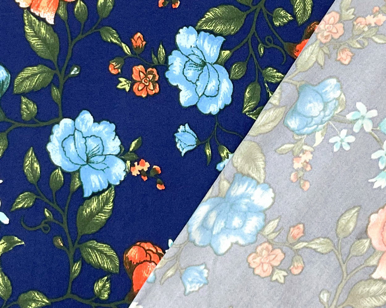 -Deep Blue-Multi Poly Spandex Stretch Floral Print Double Brush Jersey Knit Fabric