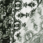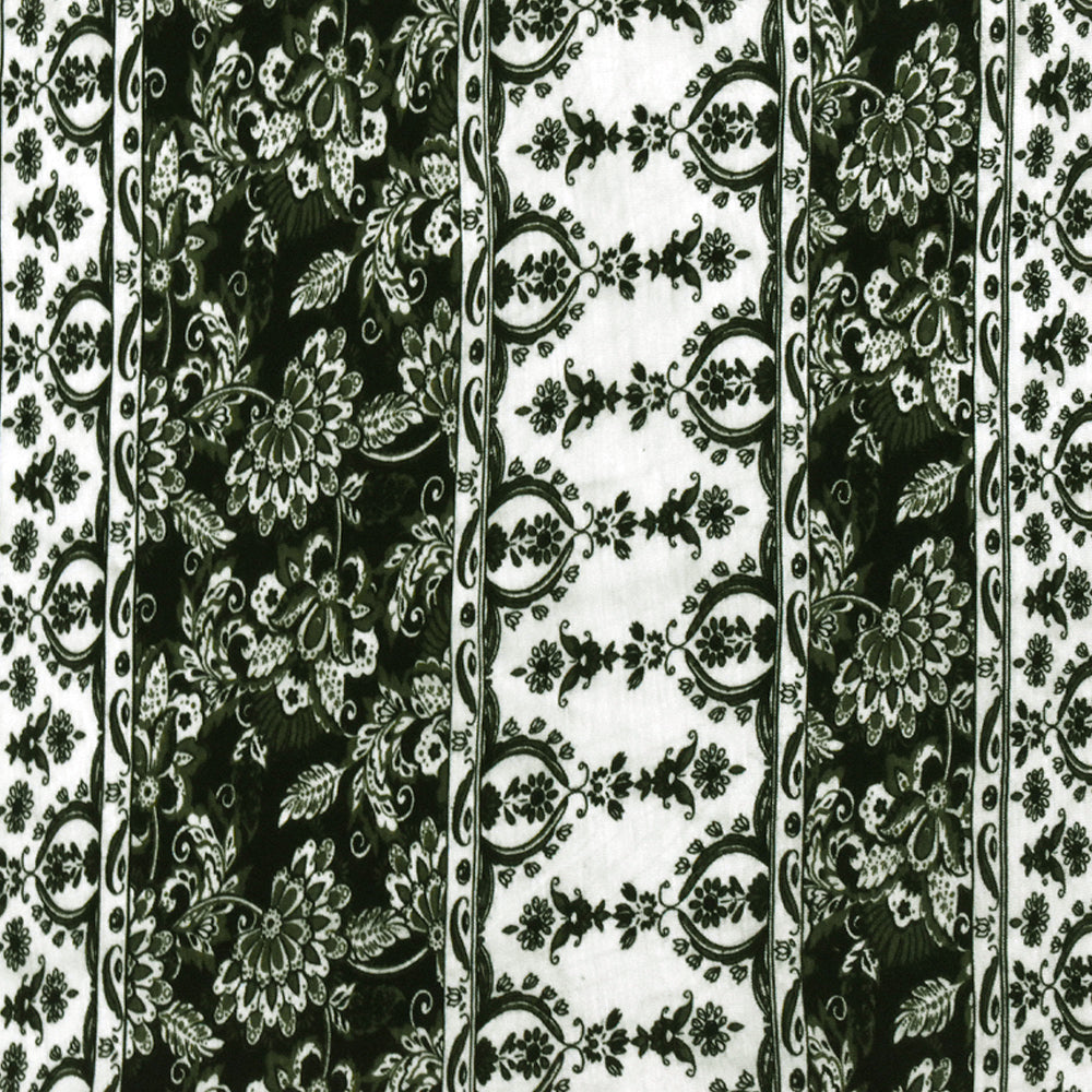 -Rayon slub jersey knit fabric printed with a floral and pillar-like elements in a striped arrangement