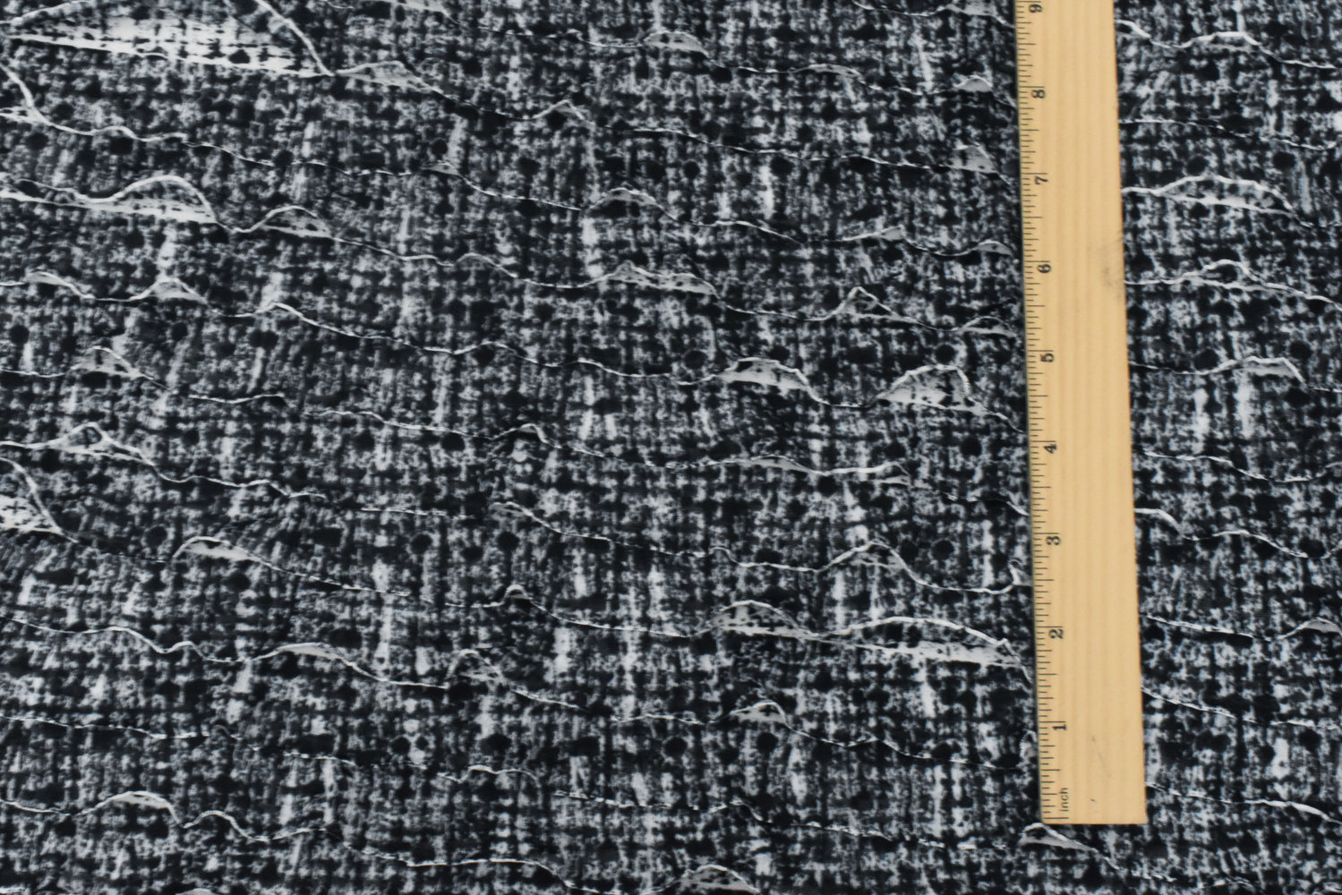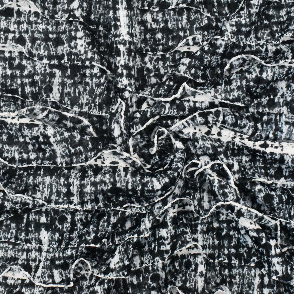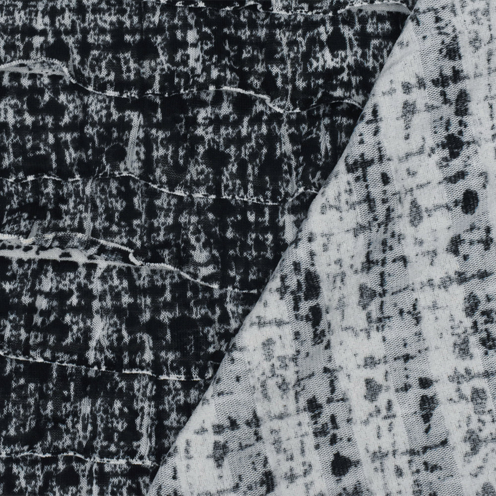 Ink Black-Ivory Tie Dye Stretch Poly Ruffle Knit Fabric