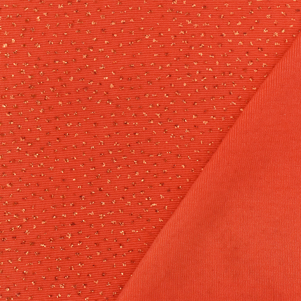 Intense Orange Sparkle Metallic Printed Stretch Slinky Knit Fabric