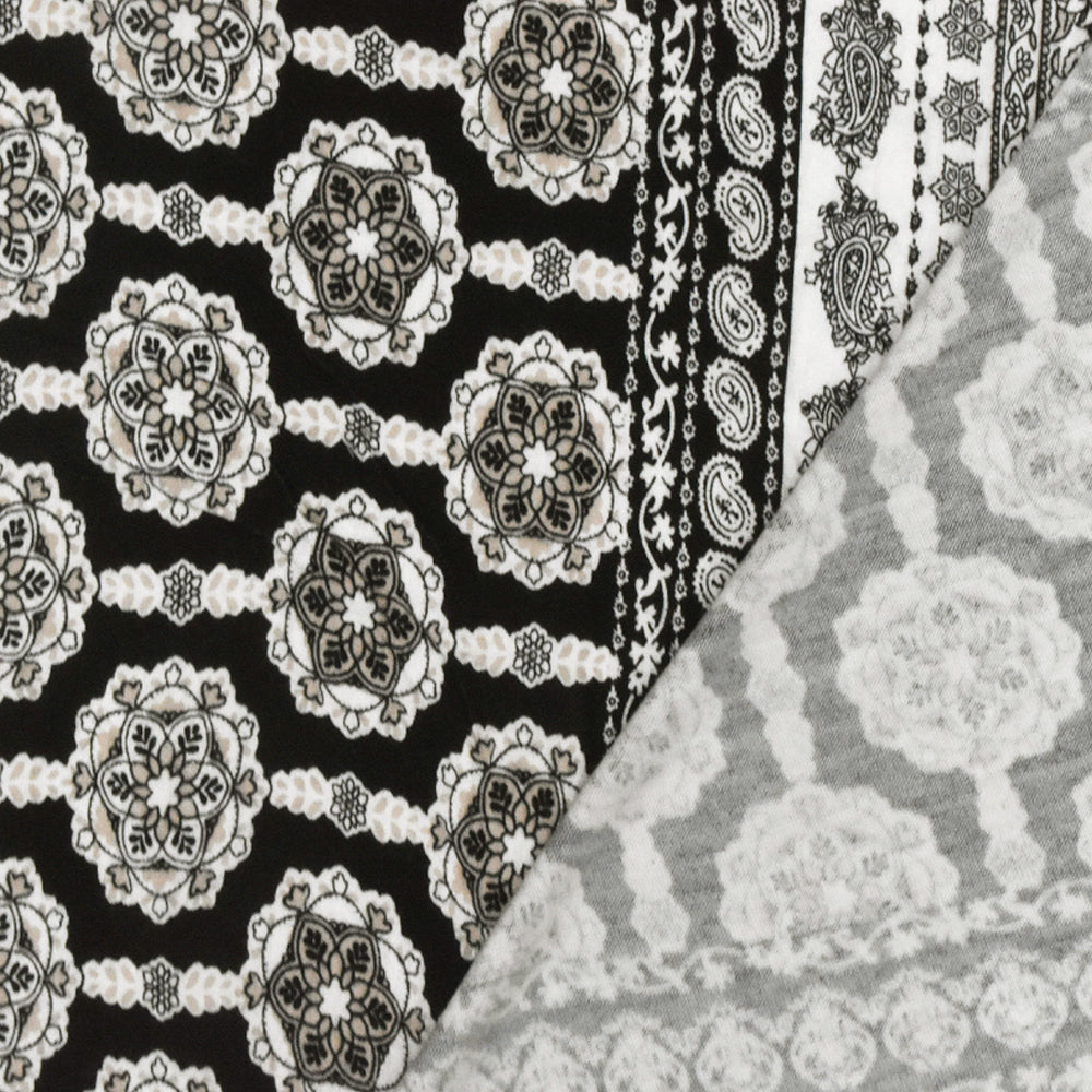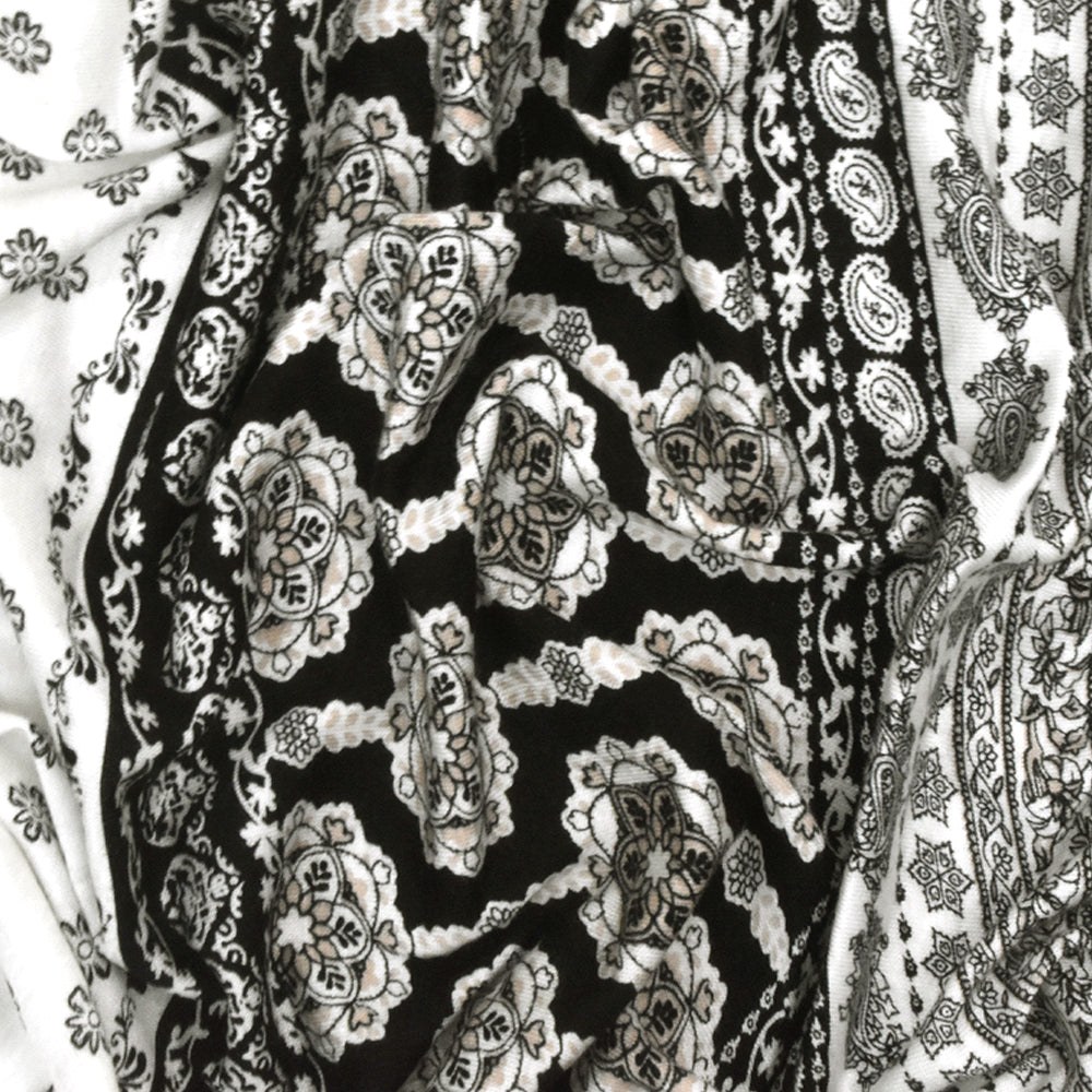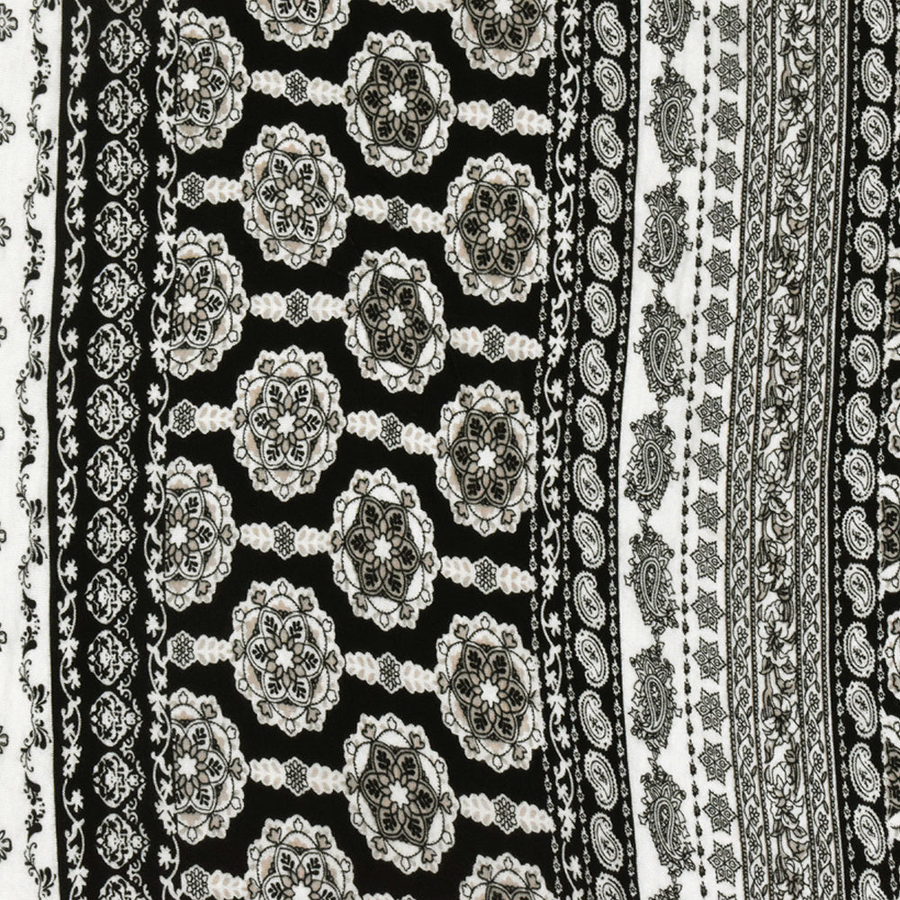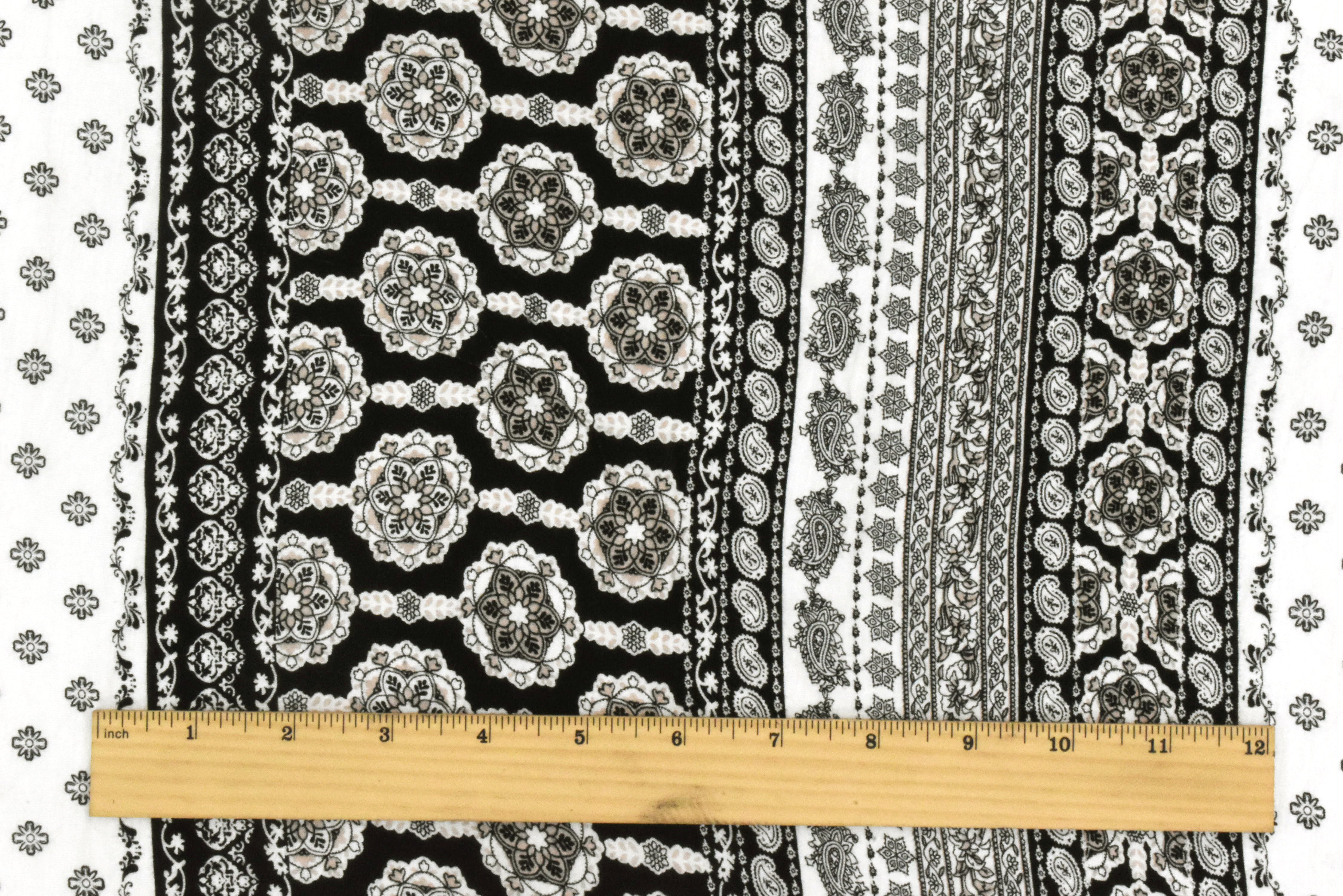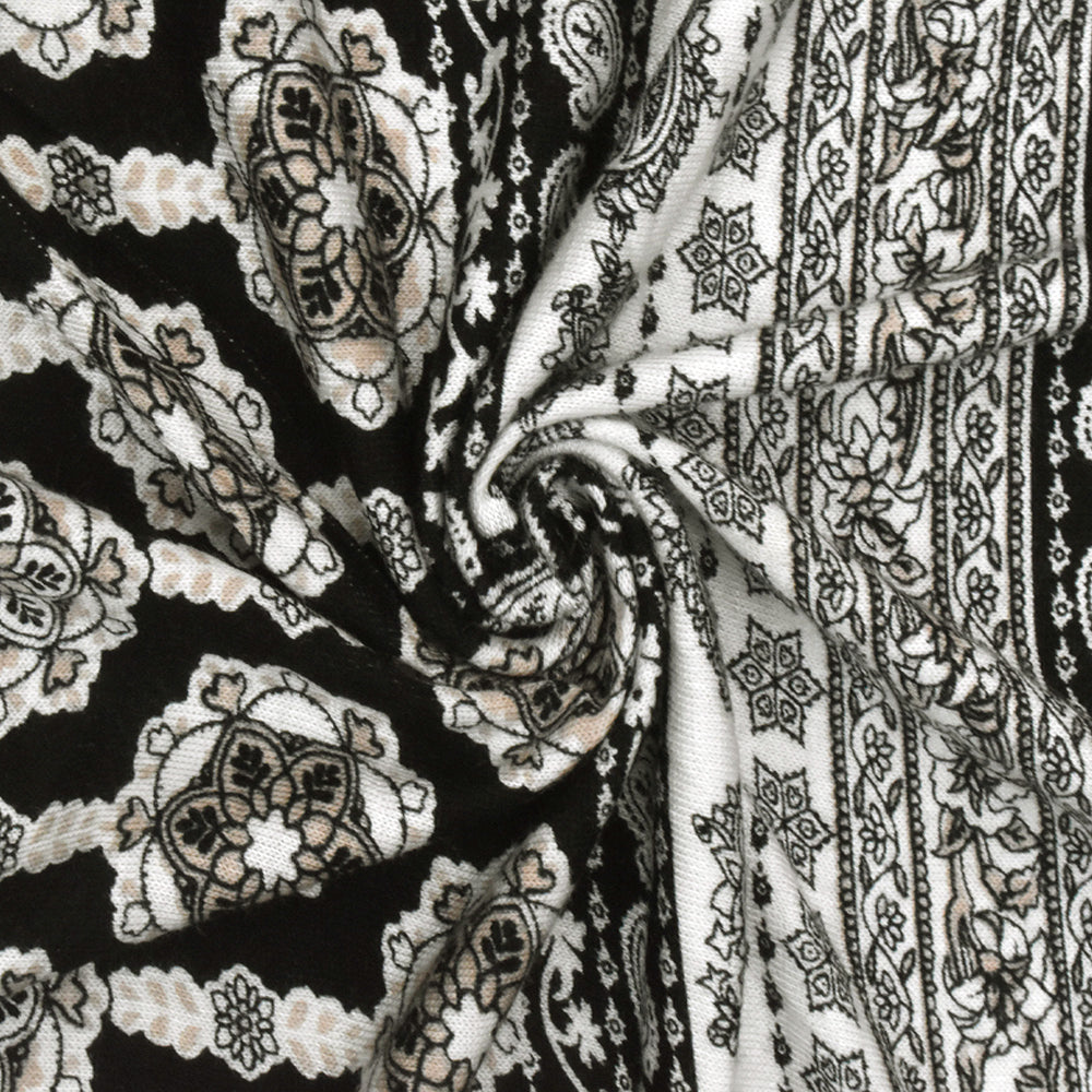 Ivory-Black-Beige Mix Pattern Printed Rayon Stretch Jersey Knit Fabric