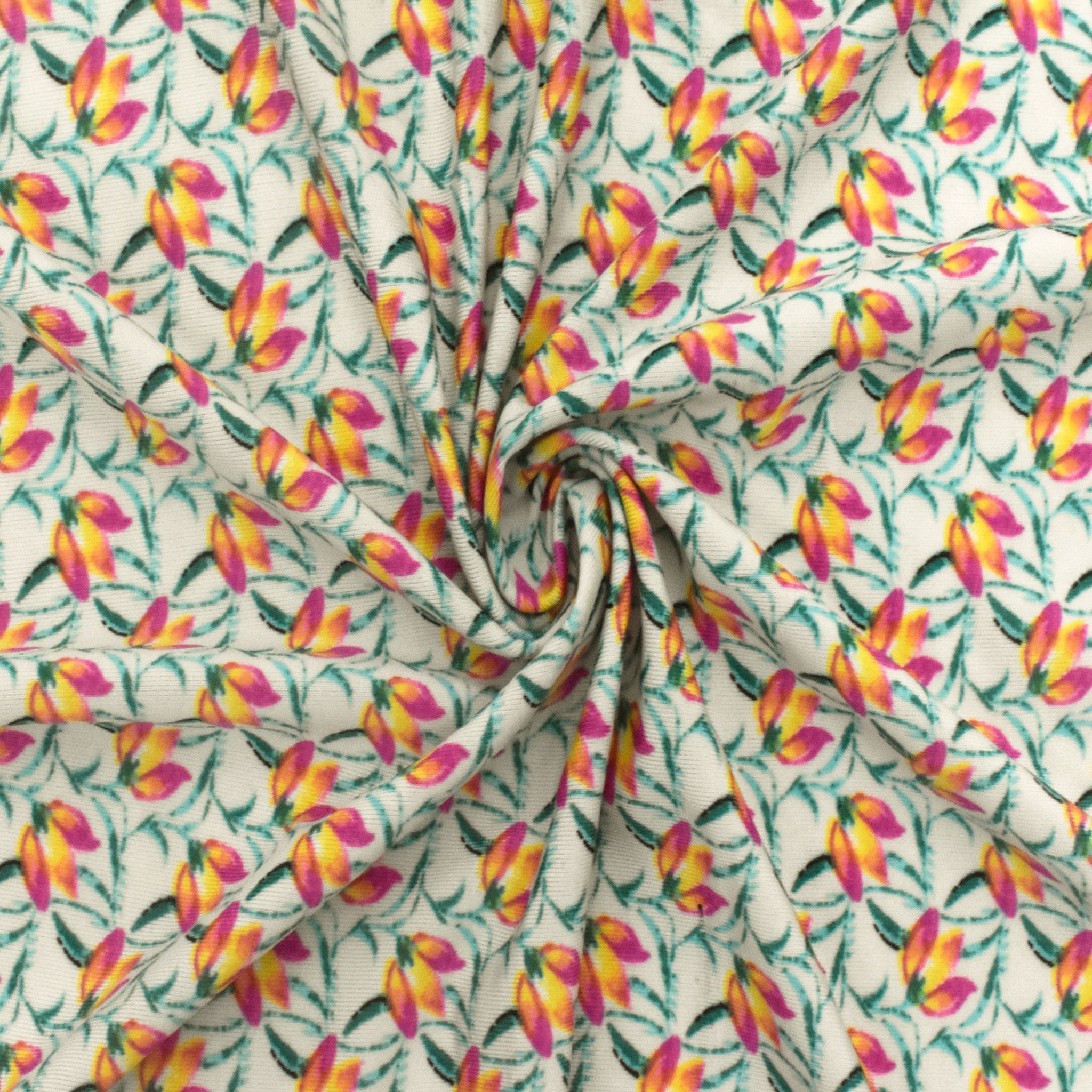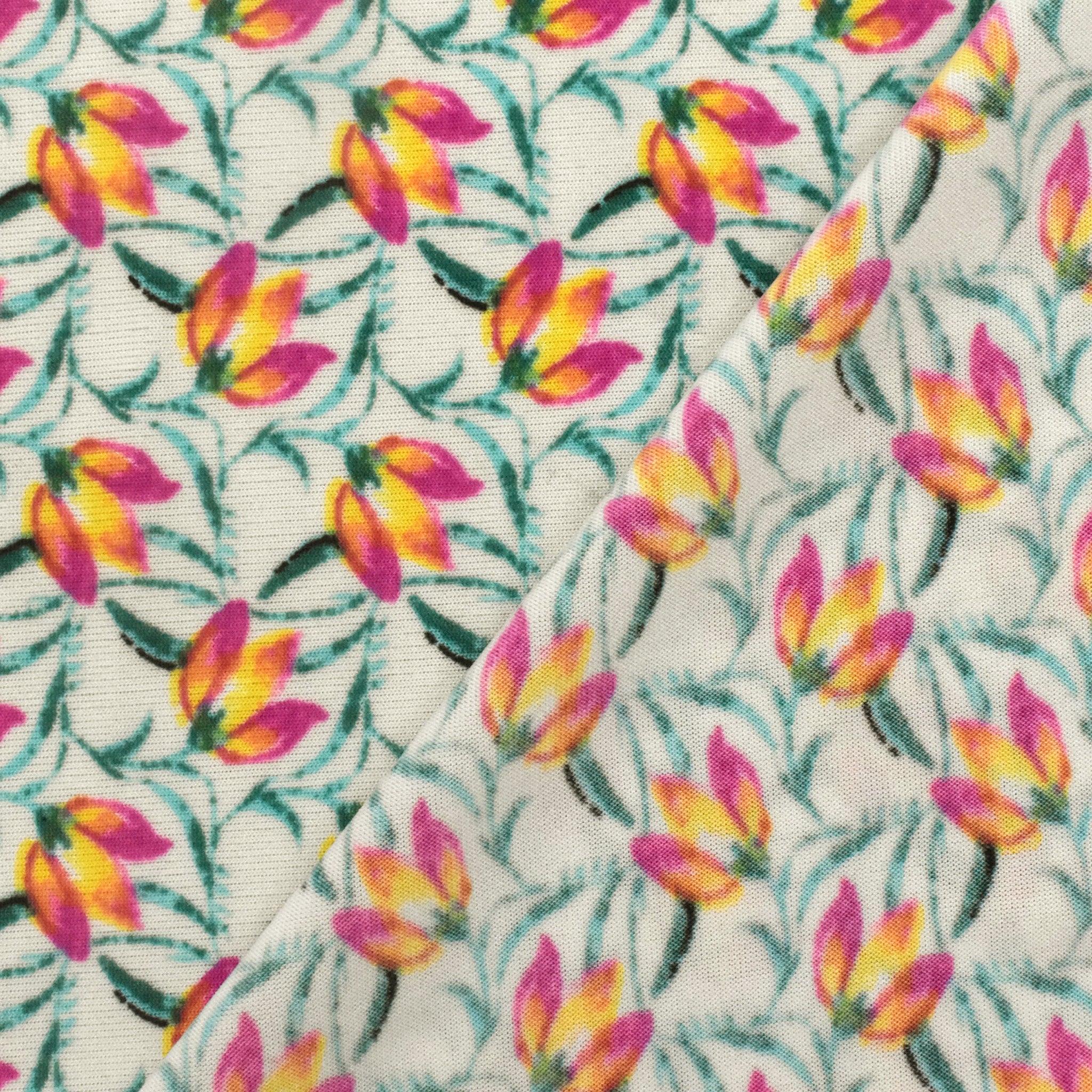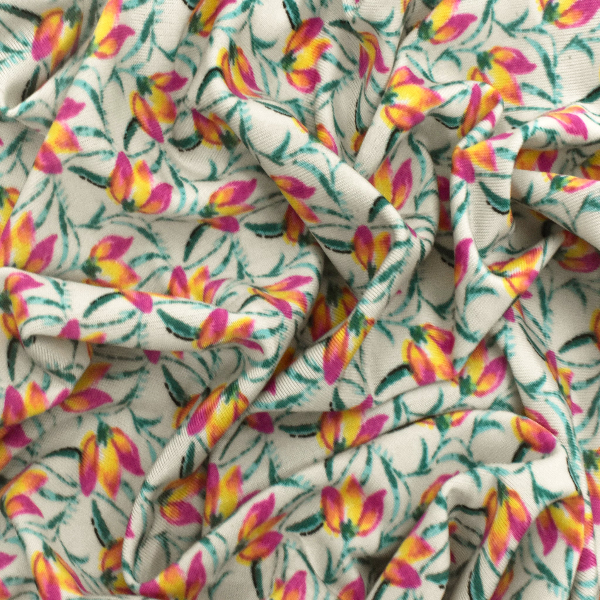 Ivory-Hot Pink-Multi Floral Printed Stretch Jersey Activewear Knit Fabric