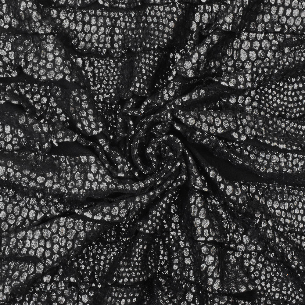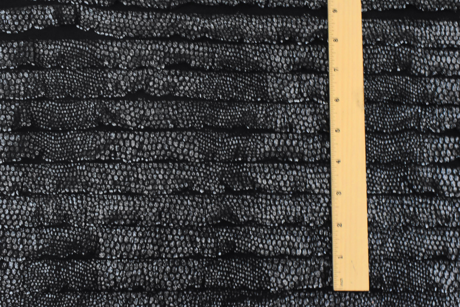 Just Black-Silver Spots Foil Printed Stretch Poly Ruffle Knit Fabric