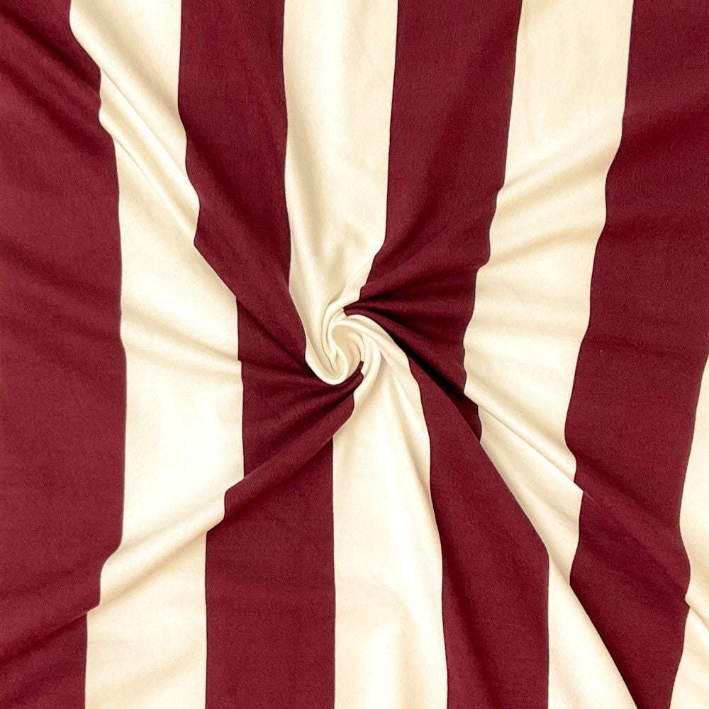 Maroon Red-Ivory Poly Spandex Stretch Stripe Print DB Jersey Knit Fabric