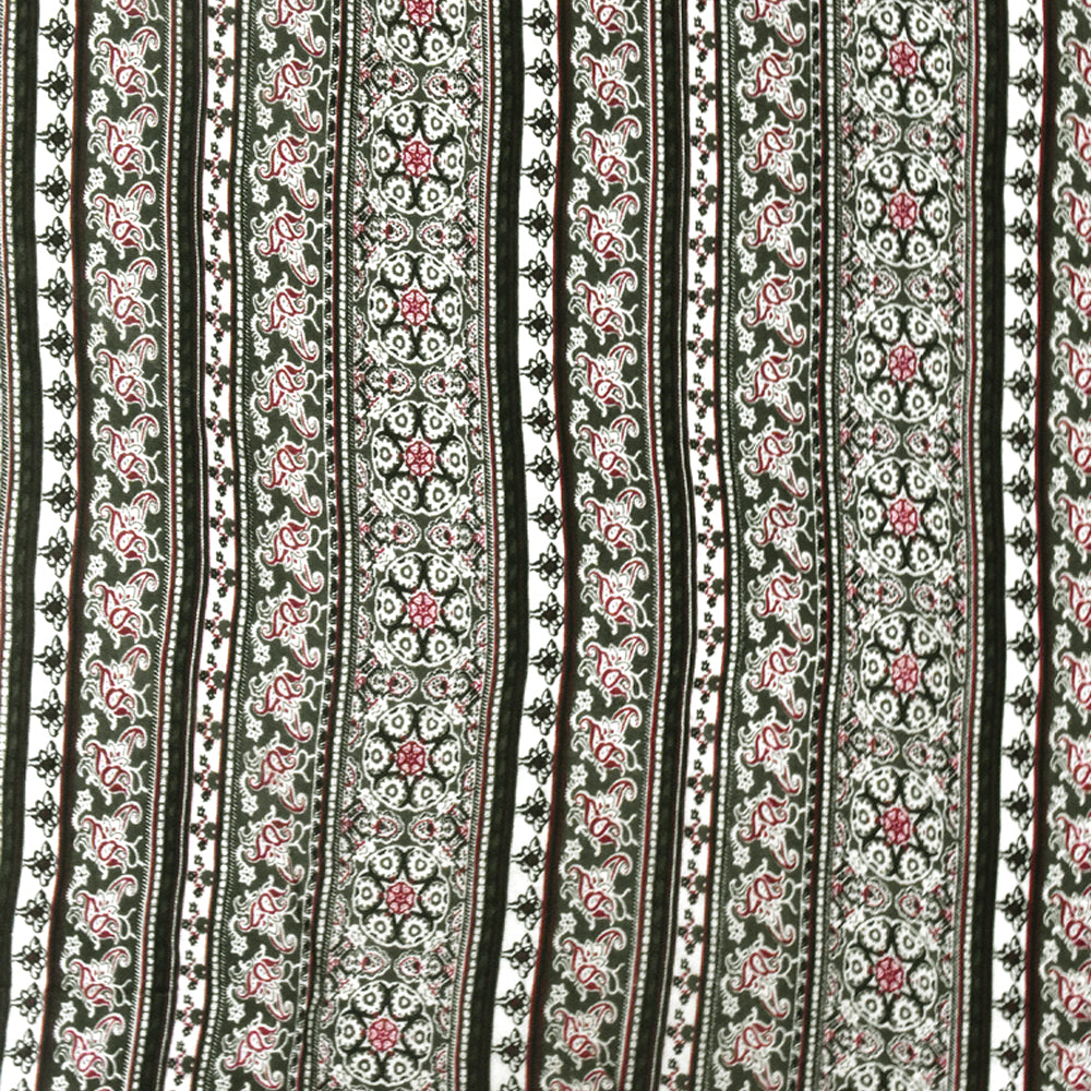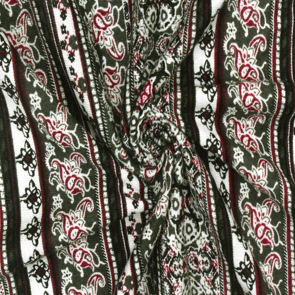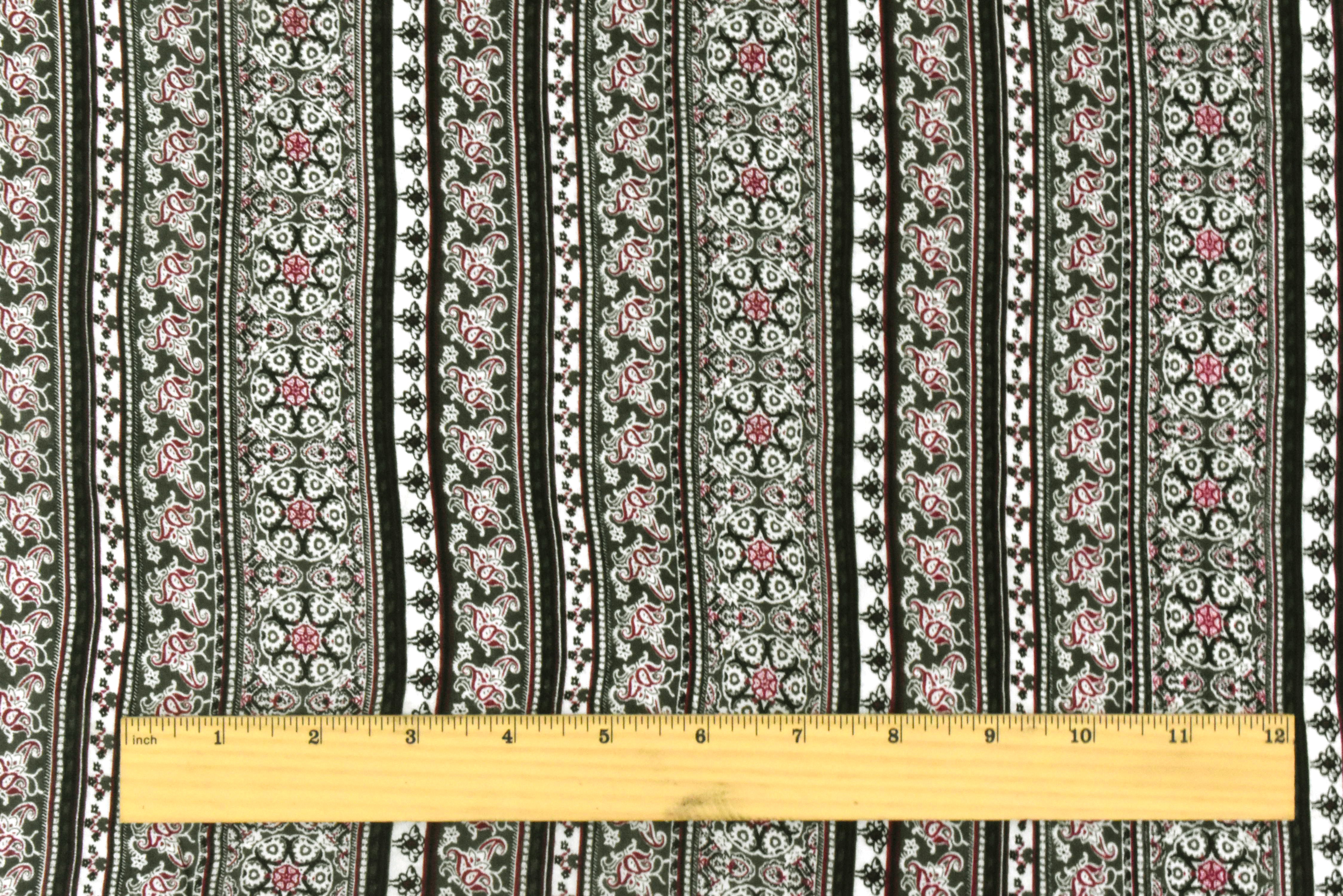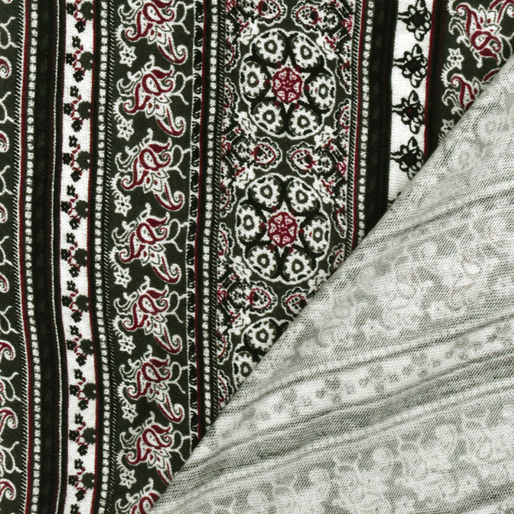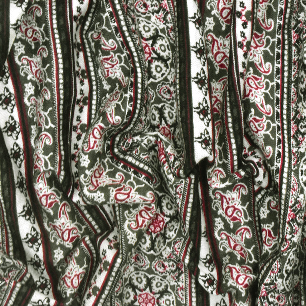 Olive-Multi Mix Pattern Stripe Printed Rayon Stretch Jersey Knit Fabric