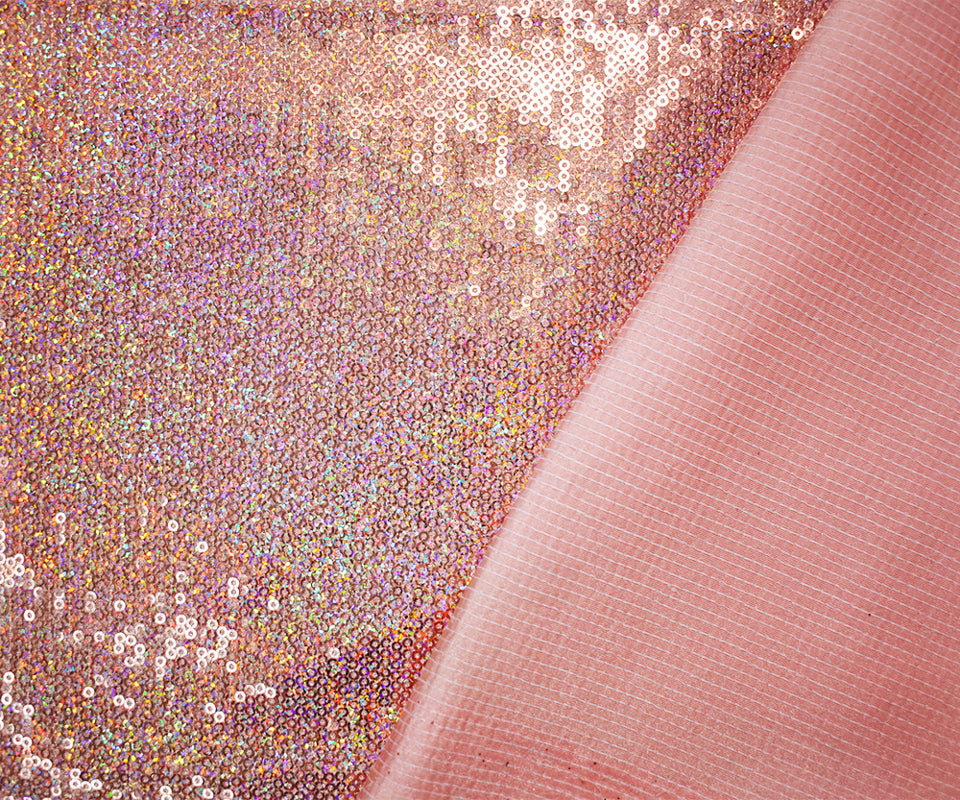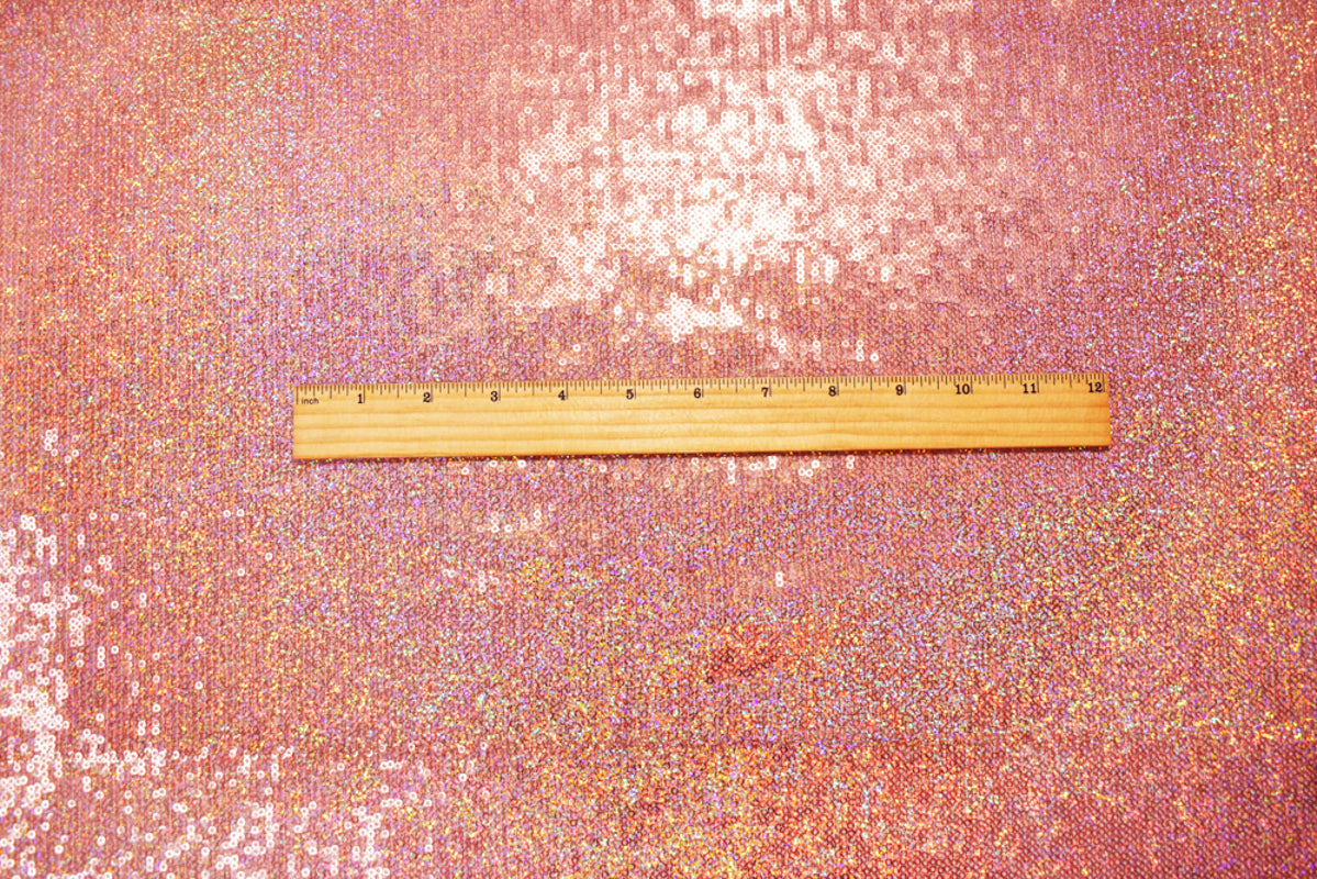Peach Nylon Polyester Sequined Stretch Knit Fabric